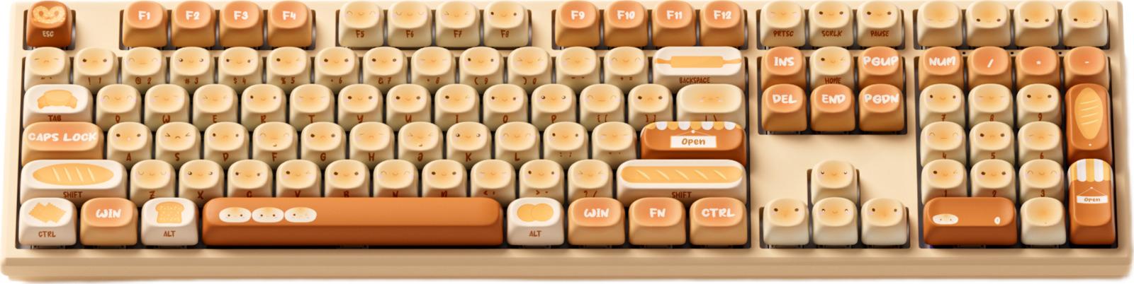 *Akko x MonsGeek MG108B Bun Wonderland MOG 100% Cilantro Hot-Swappable Wireless Mechanical Keyboard**Features:** PBT Dye-sub keycaps;* Multi-modes (BT 5.0, 2.4Ghz, and Type-C);* Programmable RGB Backlit with MonsGeek Driver.*PBT Dye-Sub Keycaps*Made through dye-sub process with durable PBT materials that legends will not fade easily.*Multi-Modes*The MG108B Bun Wonderland can be connected to multiple devices through bluetooth 5.0, multi-host 2.4Ghz (with a receiver), and wired Type-C modes with easy switch.*Adjustable Heights*Adjustable height to enhance your typing experience.The keyboard is supplied with a tilting stand with 3 levels of height adjustment,which allows it to be adapted to the individual needs of the user.
