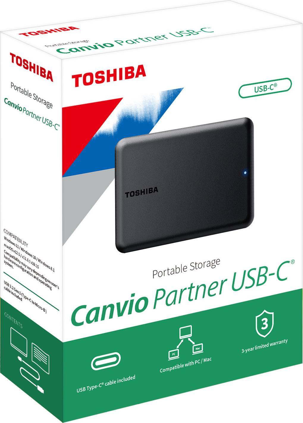With mobile storage, you need a simple solution you can trust. That‘s whywe designed the Toshiba Canvio Partner USB-C® for efficiency and reliabilityand is made for the future with a standard USB-C® cable. Regardless of yourpreferred devices, it‘s ready to use in no time – with capacity options upto 4 TB. Plug it in, drag and drop, and you‘re ready to keep all your filessafe and up to date wherever your journey takes you.