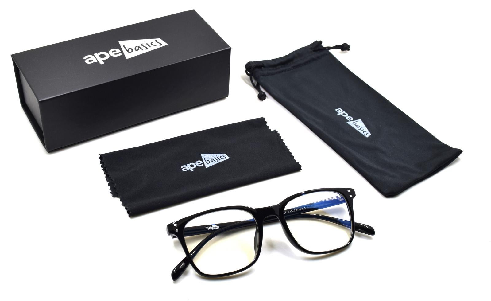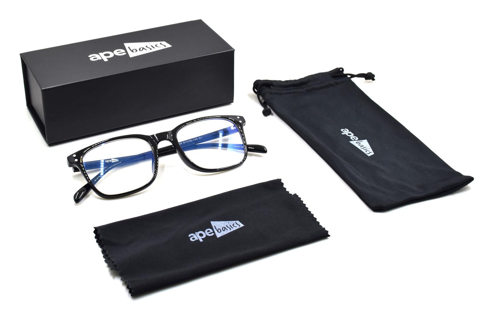 *Ape Basics Anti-Bluelight Glasses 20%*As we spend more time at home and office, we increase our exposure to screens, particularly UV and Blue light. Our Ape basics entry-level anti-blue light glasses are designed to reduce eye strain and provide more comfort when looking at screens while being sleek at the same time. Great for individuals who stare at a screen for long periods. A perfect gift for any friend, gamer or family member.*Features**Anti-eye Fatigue*Long time exposure to blue light would lead to digital eye fatigue. Wearing your Ape Basics Anti-Bluelight Glasses, no more tired eyes. Reduce eye strain and sensitivity to light when facing digital screens. Great for office workers or anyone who has to look at a screen all day.*Blue Light Filter Lens & Durability*Ape Basics lenses reflect and filter the blue light emitted in artificial light. Advanced coating technology increases the lens's surface hardness, preventing scratches and abrasion while reflecting harmful light, making it thinner and durable.*Highlights** 100% UV400 protective* 20% Anti-blue light protection (tested)* Light Weight* Universal Fit* Includes carrying case, pouch and microfibre cloth*Specifications:** Lens Width: 50mm* Nose: 20mm* Arms: 153mm* Box Size: 160 × 65 × 50mm(LxWxH)* Warranty: 1 Year