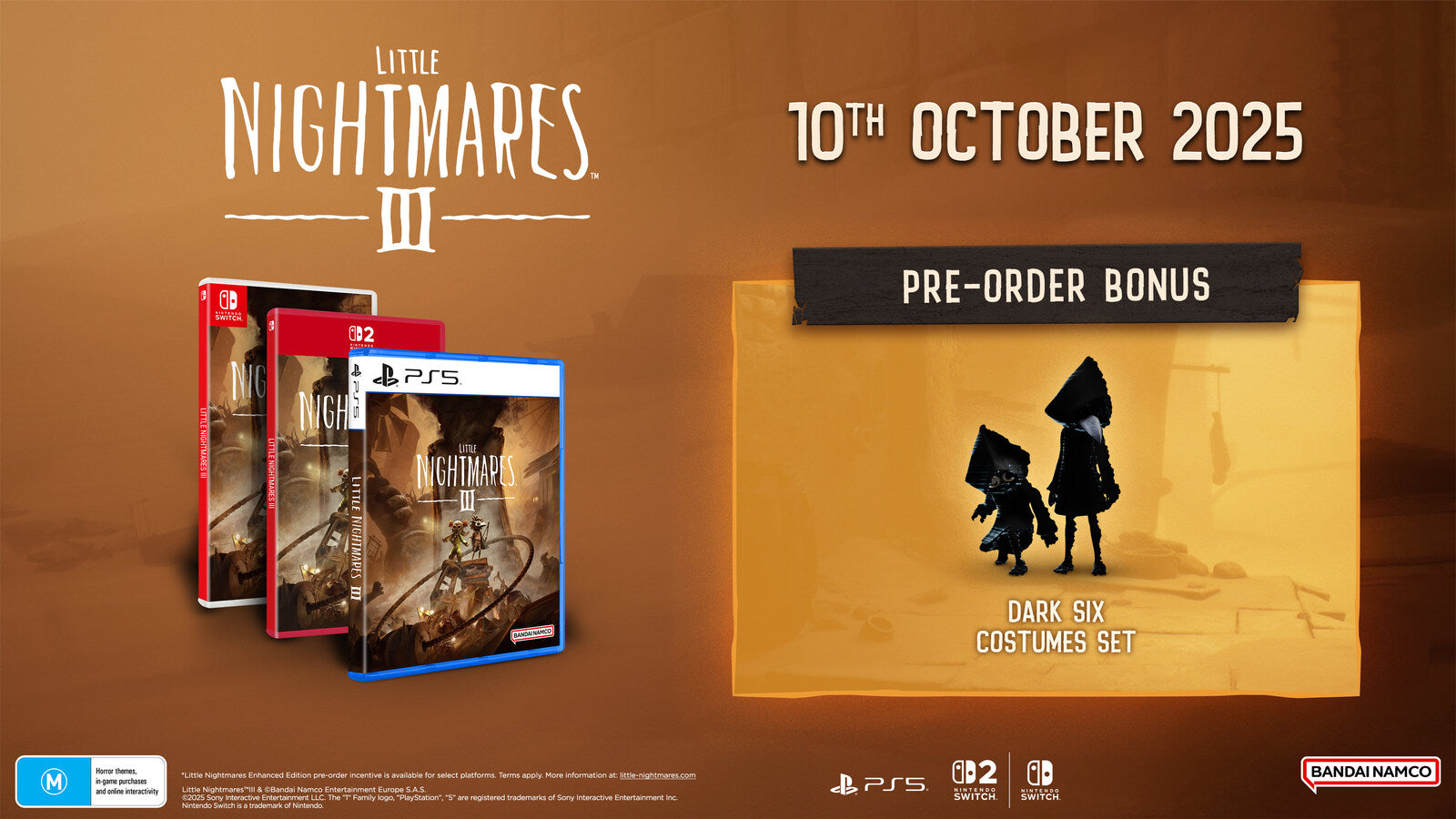 Pre-order Little Nightmares III and prepare to enter a world where fear wearsmany faces! Get the Dark Six Costumes Set suited for both characters Low andAlone – a twisted reflection of the girl who escaped The Maw.