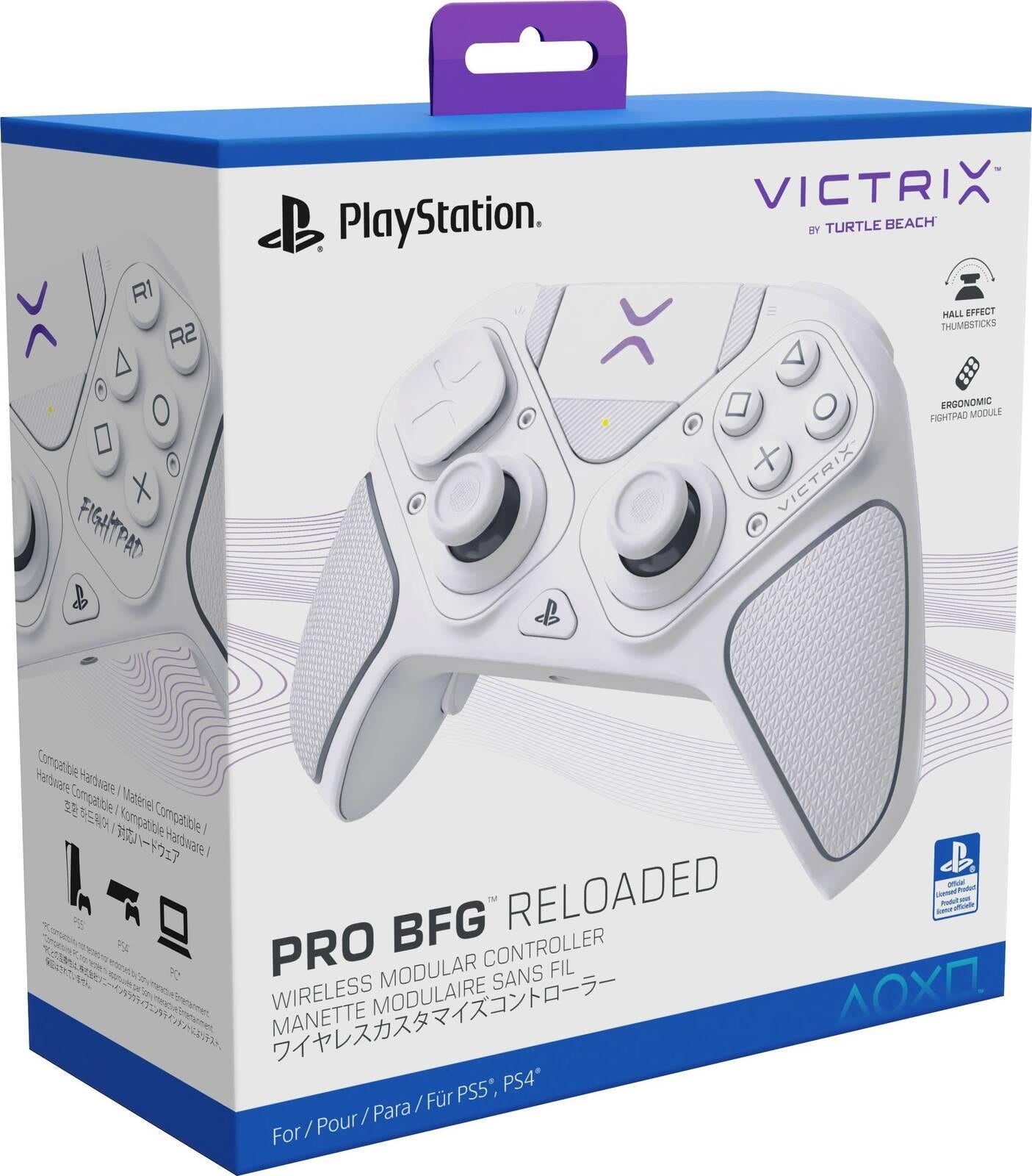 The Victrix Pro BFG Reloaded is the next evolution of the award-winning modular Pro BFG wireless controller, designed for elite gamers who demand precision, customization, and versatility on PlayStation and PC.At its core are customizable modules with built-in Hall-Effect technology, ensuring drift-free precision for consistent and reliable input accuracy. With three modules and eleven interchangeable components you can customize your controller for optimal comfort and performance. Modularity meets precision with four mappable back buttons, dual rumble motors, impulse triggers, 5-stop Hall-Effect Clutch Triggers with Hair-Trigger mode, and a lifetime subscription to Sony 3D Audio spatial surround sound. For the fighting game community, the ergonomically enhanced 6-button Fightpad module with Kailh microswitches delivers tournament-level accuracy for flawless combos.With pro-level customization and tournament-grade performance, the PlayStation officially licensed Pro BFG Reloaded is the ultimate weapon for PS4, PS5, and PC gamers.Features:* 3 customizable modules with built-in Hall-Effect technology* Ergonomically enhanced 6-button Fightpad module with Kailh microswitches* 5-stop Hall-Effect Clutch Triggers with Hair-Trigger mode* 4 mappable quick-action buttons* 11 interchangeable components* Built-in 3.5mm audio jack with premium Sony 3D Audio* Wired and Wireless connectivity (up to 20-hour rechargeable battery)* PlayStation Officially Licensed Product* Free Victrix Control Hub companion app on PC* Includes carrying case and module tool
