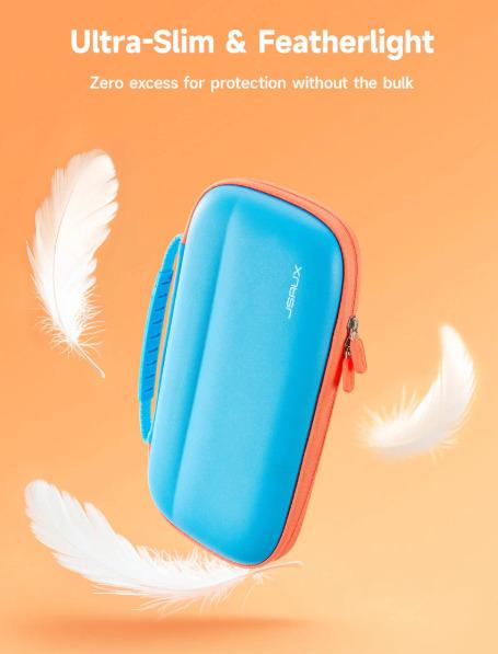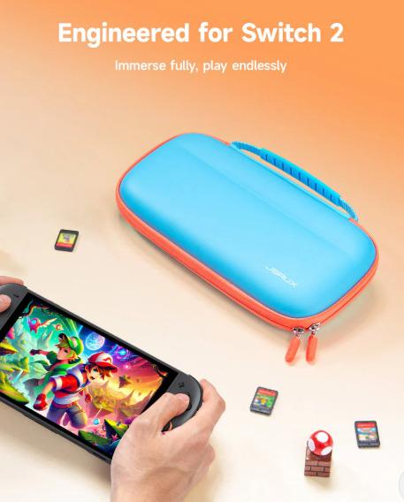 *_ULTRA-SLIM CARRYING CASE_** 10 Game Card Storage* The Thinnest Ever Case* EVA Double Protection* Waterproof & Dustproof*Main Features:*【Perfect Fit & Protection】: This JSAUX case is custom-designed for the Nintendo Switch 2, with an EVA inner lining that perfectly conforms to the console. It provides a secure, snug fit while protecting your device from scratches, bumps, and everyday wear.【Sleek and Stylish】: Available in blue and orange, this case seamlessly blends modern aesthetics with reliable protection, ideal for players who value both style and functionality.【Ultra-Thin and Lightweight】: Compact and ultra-slim, this case fits easily into backpacks or handbags, making it the perfect companion for commutes, travel, or gaming on the go.【Convenient and Secure】: Featuring interior straps to keep your Switch 2 securely in place, this case prevents movement or damage during transit, ensuring everything stays safe.【Durable and Long-Lasting】: Built with high-quality materials, this case is designed to withstand daily use, providing long-lasting protection against wear and tear while keeping your Switch 2 safe.*Specifications:** Compatibility: Nintendo Switch 2* Material: EVA +PU* Size: 296mm(L)x140mm(W)x53mm(H)* Weight: 342g