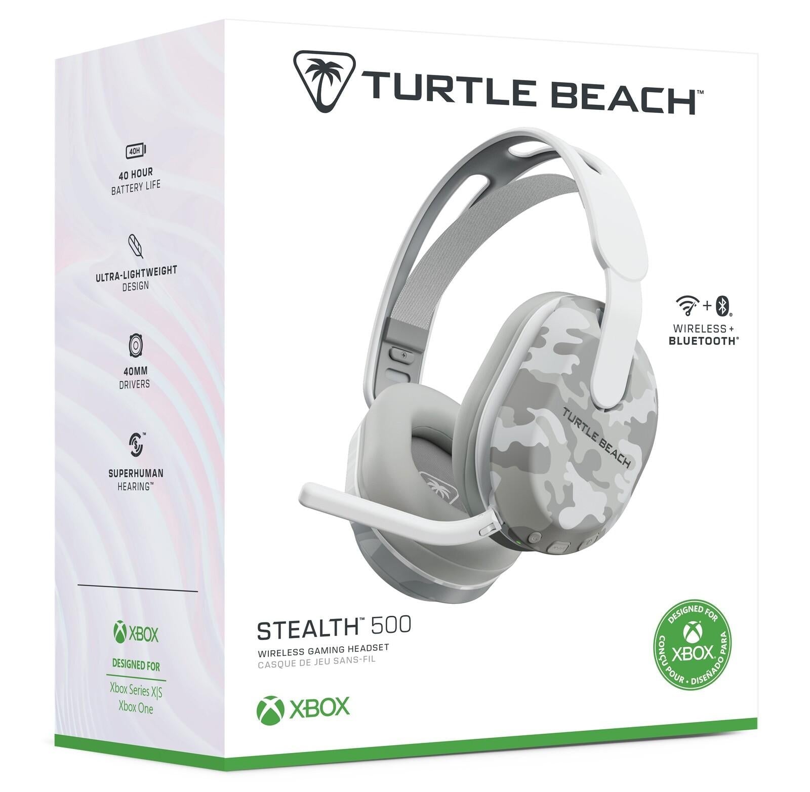 The Turtle Beach Stealth 500 for Xbox Series X|S & Xbox One redefines what an “entry-level” wireless headset is capable of. Easily toggle between 2.4GHz Wireless for Xbox gaming & Bluetooth connections for PC & mobile devices using the QuickSwitch button. A staggering battery life of up to 40 hours and an ultralightweight, floating headband design with memory foam cushions will keep you locked in the game for hours in complete comfort. Precision-tuned, amplified 40mm drivers along with extensive audio tuning in the Swarm II app deliver ultra-clear, customizable audio quality, optimized for spatial audio. Chat with ultra-clear voice accuracy thanks to the omni-directional flip-to-mute microphone.*Step up to Wireless Freedom*Play your favorite games on Xbox Series X|S & Xbox One with low-latency 2.4GHz wireless as well as PC, & mobile with Bluetooth 5.2 connectivity.*Best-In-Class Battery Life*With up to 40 hours of battery life and quick charge you can enjoy long gaming sessions without worrying about running out of power.*QuickSwitch Technology*Easily switch between 2.4GHz wireless & Bluetooth connections with the built-in QuickSwitch button. A simple press of the button switches your audio & chat source between wireless & Bluetooth devices, enabling you to effortlessly transition between connections.*Non-Stop Comfort*An ultra-lightweight, floating headband & plush memory foam ear cushions provide a fit so comfortable, you’ll forget you’re even wearing a headset.*Precise, Amplified Audio*40mm drivers are meticulously tuned for precise and powerful spatial audio quality, giving you a distinct audio advantage over the competition.*Anywhere Audio Customization*Connect to the Swarm II desktop software for PC or mobile app for iOS or Android to access a 10-band audio EQ, audio & microphone presets, and more\*. Plus, you can update the firmware easily using Swarm II to ensure your Stealth 500 is always up to date.\*Select advanced audio features available in 2.4GHz wireless mode may not be supported inBluetooth mode.*Ultra-Clear, Flip-to-Mute Mic*Chat with precise voice accuracy thanks to the omni-directional flip-to-mute mic that seamlessly integrates into the headset when not in use.*Easy Access to Audio Presets*Enhance your gameplay experience at the touch of a button with four Turtle Beach audio presets including Bass Boost, Signature Sound, Treble Boost, and Vocal Boost.*Advanced Superhuman Hearing*Advanced Superhuman Hearing brings the same great battlefield advantage of Superhuman Hearing, but now with additional adjustability. In the Swarm II app, toggle between three different preset levels and adjust the intensity of Superhuman Hearing, to dial-in the perfect sound for a wide range of games.*Variable Mic Monitoring*Avoid shouting thanks to mic monitoring (or sidetone) which allows you to hear your voice through the headset and adjust monitoring levels on-the-fly with on-ear controls or in the Swarm II app.View our Headphones Return Policy [Here](https://help.mightyape.co.nz/hc/en-nz/articles/115012111088-Returns-Policy)