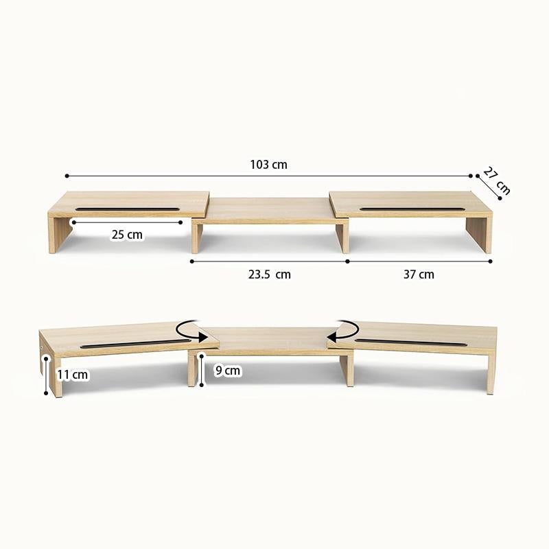 *_STORFEX Monitor Stand_*Elevate your workspace with the STORFEX Monitor Stand, designed to enhance comfort and organization in your home or office. Featuring unique multi-functional slots for your tablet and smartphone, this stand helps manage cables, pens, clips, and other office supplies, providing a more convenient working environment.*Features:*Extra Multi-Functional Slots: The innovative slot design allows you to securely hold your tablet and cell phones while keeping essential office supplies organized. Enjoy a clutter-free desk that enhances productivity.Easy to Assemble: Set up your desktop stand in just two minutes! Simply use the included screws to assemble the base shelves and attach the side parts to the middle section for a quick and hassle-free installation.Customize Your Stand: Adjust the height and angle of the stand to create a comfortable sitting position, allowing for a better viewing experience while working or gaming.Tidy Working Space: Lift your monitors with this desktop shelf while storing your keyboard, office files, notebooks, and calculators underneath. Eliminate clutter and maintain an organized workspace.Care for Your Body: As an ergonomic monitor riser, this stand raises your computer monitor, tablet, or laptop to eye level, promoting better posture and reducing stress caused by prolonged sitting.*Specifications:*Color: WoodMaterial: WoodLoad-Bearing Capacity: 30 kgDimensions: 42.5 × 30 × 8 cmWeight: 4.2 kg*Package Contents:*1 x STORFEX Monitor Stand1 x Screw Set1 x User Manual1 x Screwdriver8 x Anti-Slip Stickers