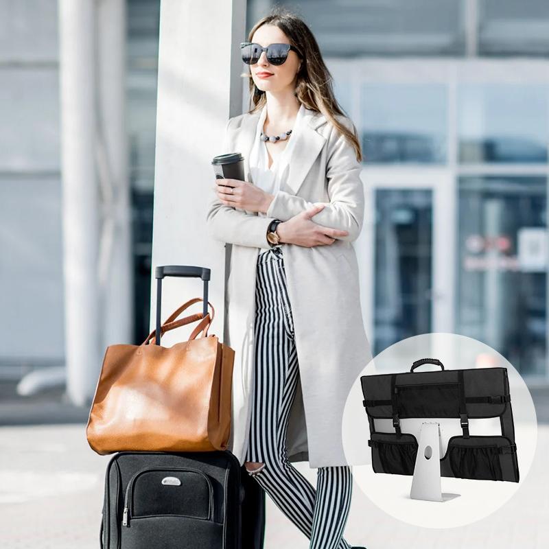 *_STORFEX Travel Carrying Bag for 27" iMac_*Protect and transport your 27" iMac Desktop Computer with the STORFEX Travel Carrying Bag. This specially designed bag serves as both a dust cover and a convenient carrying solution, featuring multiple pockets to keep your essential computer peripherals organized. Made from durable Oxford cloth with a soft velvet lining, it provides superior protection against dust, dirt, and scratches. Perfect for on-the-go professionals, photographers, and designers, this lightweight and portable bag ensures your iMac is safe and secure during travel.\*\*Features: \*\*Custom Fit for 27" iMac: Designed with specific dimensions of 67 × 50 × 2 cm, this carrying bag offers a snug fit for your iMac, ensuring it remains secure and protected during transport and storage.Organized Storage Solutions: The multiple pockets facilitate organized storage for your keyboard, mouse, magic trackpad, mouse pad, wires, hard drives, headphones, and more, making it easy to find what you need.Durable Protection: Constructed from high-quality Oxford cloth, the exterior is designed to withstand wear and tear, while the soft velvet lining protects your iMac from dust, dirt, and scratches.Adjustable Buckle Design: The back of the bag features multiple adjustable buckles that can be tailored to fit your monitor snugly, providing added security during transport.Lightweight & Portable: Featuring a convenient PVC handle, this carrying bag is easy to transport, making it ideal for professionals who need to travel frequently with their iMac.*Specifications:** Color: Black* Material: Oxford Cloth, Velvet* Dimensions: 67 × 50 × 2 cm* Weight: 0.65 kg*Package Contents:*1 x STORFEX Travel Carrying Bag