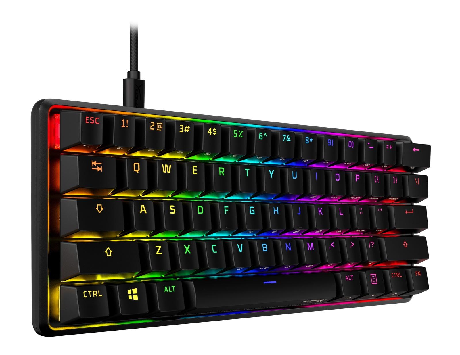 The HyperX Alloy Origins 60 is a supremely portable 60% form factor keyboard that gives you more room for sweeping mouse movements. It features a durable, full aluminum body, and reliable HyperX switches balanced for speed and performance which are rated to withstand 80 million keypresses. The stock double shot PBT keycaps have secondary functions printed on them so you can quickly locate additional functionality. Let your style shine bright with the HyperX switches’ exposed LED design, and stunning lighting effects. Further customize your keyboard with macros, personalized lighting profiles, and more with HyperX NGENUITY software.*Petite 60% form factor*Free up more room for your mouse with this supremely compact keyboard.*Full aircraft-grade aluminum body*The aluminum casing keeps the keyboard structurally sound and stable when the action gets intense and the game hangs in the balance; battle after battle, night after night.*Double shot PBT keycaps with side-printed secondary functions*The keycaps are designed with durable PBT material that is resistant to wear, friction, and solvents. Secondary functions are printed on the sides of the keycaps for quick recognition.*HyperX Mechanical switches*The key switches are custom-designed to be a balance of responsiveness and accuracy, featuring a short travel time and low actuation force. They’re also reliable, rated for 80 million keypresses with no loss of quality.*RGB backlit keys with radiant lighting effects*Get brighter, more luminous RGB lighting, thanks to the exposed LED design of the HyperX mechanical switches.*Advanced customization with HyperX NGENUITY*Customize Game Mode, build macros, and set up per-key lighting and effects.*Three adjustable keyboard angles and detachable USB-C cable*Two-step keyboard feet allow you to set your keyboard up at 3 different tilt angles. A detachable USC-C cable makes this ultra-compact keyboard super portable.*Included keycap puller and additional keycaps*A keycap puller, an additional Esc key, and the special alternate spacebar design for the Alloy Origins 60 are included for additional customization.Specifications:Keyboard* Switch: HyperX Aqua – Tactile* Type: Mechanical* Backlight: RGB (16,777,216 colors)* Light effects: Per key RGB lighting and 5 brightness levels* Onboard memory: 3 profiles* Connection type: USB-C to USB-A* Anti-ghosting: 100% anti-ghosting* Key rollover: N-key mode* Media control: Yes* Game mode: Yes* Spill resistance: not applicable* OS compatibility: Windows® 10, 8.1, 8, 7* Cable (Type): Braided, detachableSwitch* Switch: HyperX Red Switch* Operation style: Linear* Operating force: 45g* Actuation point: 1.8 mm* Total travel distance: 3.8 mm* Life span (keystrokes): 80 millionDimensions* Width: 296.0 mm* Depth: 105.5 mm* Height: 36.9 mm* Weight (keyboard and cable): 781.5 gKeycaps* Material: PBT