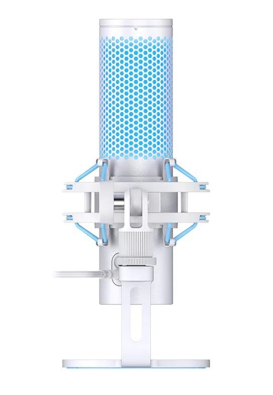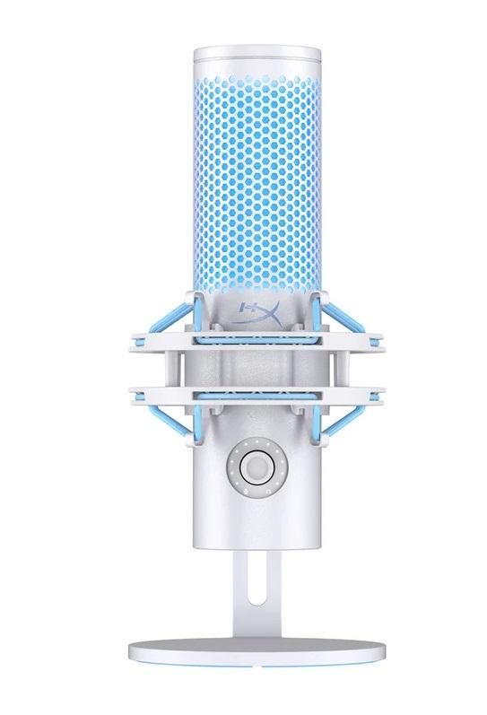 The HyperX QuadCast 2 refines everything that made the original such a favorite amongst gamers, streamers, and content creators around the world. All the fan-favorite features are still here: the iconic stunning lighting, the tap-to-mute sensor, 4 selectable polar patterns, 3.5mm headphone jack and included shock mount and desktop stand but now with a range of innovative additions and packaged in a new sleek, full aluminum silhouette.QuadCast 2 features upgraded 24-bit, 96kHz recording for a studio-quality recording experience. It also features a redesigned detachable shock mount with improved performance and innovative spring-loaded pins, making removal easy and allowing the use of universal shock mounts.In response to our fan’s feedback, QuadCast 2 now includes a multi-function knob so you can do everything on board without needing to alt-tab. The knob allows users to choose between microphone gain, playback volume, microphone monitoring volume, and can also switch polar patterns.The LED indicator also makes it easy to determine the current mic status without the hassle of going into the software. Users can choose different lighting effects and tune their mic via HyperX NGENUITY. The HyperX QuadCast 2 – the new standard for streaming microphones.Features:* Hi-Res Studio-Quality Recording – The QuadCast 2 will help take your recordings to the next level by capturing more sound detail and allowing the subtleties of your voice to shine through.* Tap-to-Mute Sensor – Simply tap the top of the QuadCast 2 to prevent audio accidents and quickly mute the microphone.* Intuitive On-Board Controls – The multifunction knob lets you quickly and easily adjust your microphone gain, playback volume, monitoring volume, and switch between 4 polar patterns.* Mic Status LED indicator – The easy-to-see LED indicator and customizable grille lighting lets you spot whether or not the mic is live.* Removable Shock Mount – The pre-attached vibration-dampening shock mount is easily detachable thanks to the spring-loaded pins. The shock mount joint is also compatible with 3/8” and 5/8” threading, for easy setups.* Stunning HyperX Red Lighting – Give your streams and desk setup a touch of signature HyperX red with the QuadCast 2’s stunning lighting. Customize the lighting when live or muted in HyperX NGENUITY.* Four Selectable Polar Patterns – Optimize your recording by selecting whichever of the versatile QuadCast 2’s polar patterns (cardioid, omnidirectional, bi-directional, or stereo) best suits your audio capture needs.* Customizable in HyperX NGENUITY – Tune your microphone, adjust mic monitoring, and customize the QuadCast 2’s lighting all from simple, powerful HyperX NGENUITY Software.Tech specs:* Compatibility: PC, Mac, PS4, PS5, Nintendo Switch, Steam Deck. Software Compatibility: HyperX NGENUITY.* Connectivity and communications: USB specification: USB 2.0 (full speed)Specifications:* Color – Frost* Total Harmonic Distortion – ≤ 0.05% (1 kHz/0 dBFS)* Noise (RMS) (Headphone) – ≤-110 dBFS (A-weighted)* Noise (RMS) (Microphone) – ≤-77 dBFS (A-weighted)* Audio Controls – On-Board Controls* Connection Type – USB Type-C®* Cable length – 9.8 ft* Element – Three 14 mm electret condenser capsules* Frequency Response – 20 Hz to 20 kHz* Sampling Rates – 44.1 kHz; 48 kHz; 96 kHz* Sensitivity – Microphone – –7.5 dB (1 V/Pa at 1 kHz)* USB – USB 2.0 Type-A* Polar Pattern – Cardioid; Omnidirectional; Bidirectional; Stereo* Power Consumption – 5V 240 mA (all lights on)* Compatibility – PC; Mac; PS5; Nintendo Switch; Steam Deck. Software Compatibility: HyperX NGENUITY* Weight – Microphone: .73 lb; Shock mount and stand: .30 lb; Microphone stand: .60 lb; Total Weight: 1.80 lbIncludes:* HyperX QuadCast 2 USB Microphone* 3m USB-C to USB-C cable* USB-C to USB-A adapter* Quick Start Guide