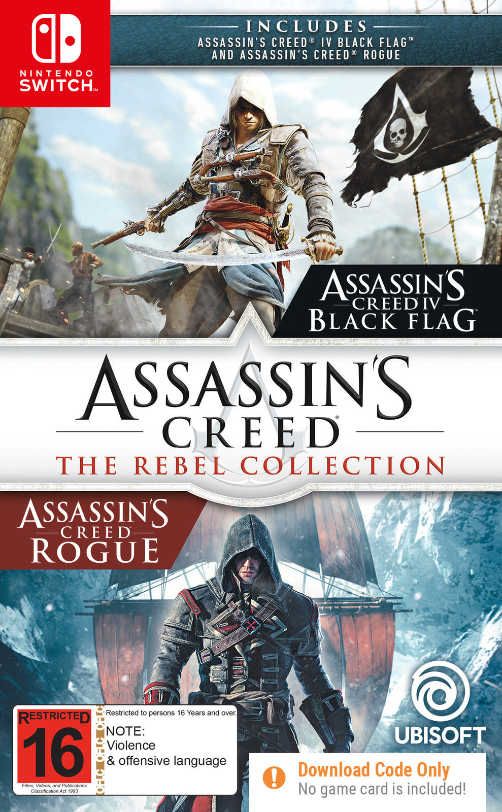 Experience the award-winning Assassin’s Creed franchise anywhere andanytime. Assassin’s Creed: The Rebel Collection offers two action-packedgames and all past DLC. Become the most feared pirate in the Caribbean inAssassin’s Creed IV Black Flag and transform into the ultimate assassinhunter in Assassin’s Cre­ed Rogue.