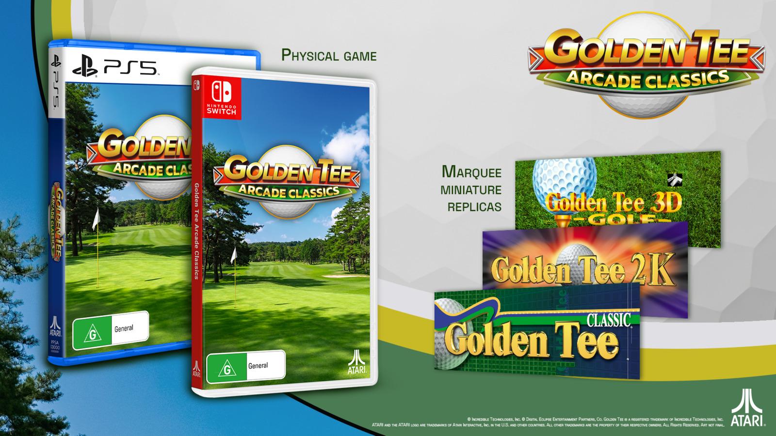 Includes Miniature Marquee Replicas of these 3 arcade titles: Golden Tee 3D Golf, Golden Tee Classic, and Golden Tee 2K!A collection of classic Golden Tee arcade games, playable for the first time on modern consoles!For Golden Tee Arcade Classics, Incredible Technologies and Digital Eclipse have chosen six early games that allow players to experience the evolution of the world’s most popular and well-known golf arcade game:* Golden Tee 3D Golf* Golden Tee 97* Golden Tee 98* Golden Tee 99* Golden Tee 2K* Golden Tee Classicncludes Miniature Marquee Replicas of these 3 arcade titles: Golden Tee 3D Golf, Golden Tee Classic, and Golden Tee 2K!Put your golf skills to the test as you swing your way across challenging courses. Experience the fun of driving, swinging, and putting with controls fine-tuned for a gamepad, touchscreen, touchpad, trackball, or mouse and keyboard, depending on your platform.For the first time in Golden Tee: a practice mode. Practice driving, chipping, and putting to dial in your skills at home before heading to the arcade. Use the new Mulligan feature to retry for that perfect shot.Features:* Experience the classic beginnings of Golden Tee at home – OI console across six formative games in the series, accompanied by the arcade classics Shuffleshot and World Class Bowling.* Interactive trackball controls – A complete new and novel interface gives you tight control over a digital trackball, recreating the classic arcade.* Mulligans on demand – The new Mulligan feature means that one bad shot doesn’t have to be the end of a great round.* Turn-based multiplayer – Challenge up to three friends in all game modes.* Achievements and trophies – In-game achievements for gold, shuffleshot, and bowling.* Touchscreen, Touchpad, Trackball, and Mouse support – Added support to play the game on many new peripherals if your preferred platform supports it, including touchscreen on Switch or Touchpad on PlayStation. Play how you want to play!
