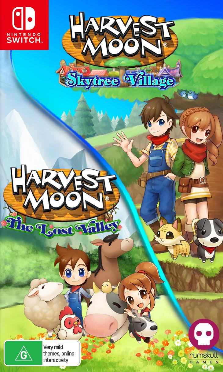 Rediscover two unique farming adventures in this special double pack, bringing Harvest Moon: The Lost Valley and Harvest Moon: Skytree Village to Nintendo Switch! Shape the land, grow your farm, and restore nature’s balance in these charming life simulation classics.In The Lost Valley, a once-thriving valley is trapped in an eternal winter—only you can bring back the seasons by farming, exploring, and uncovering the valley’s secrets! Skytree Village takes you to a land in decline, where you must revive the Skytree and breathe life back into the village with your farming skills and the help of new friends.Features:* Farm & Customize – Grow crops, raise animals, and decorate your farm with unique tools and structures.* Build Relationships – Meet a cast of colourful characters, form friendships, and even find love with multiple marriage candidates.* Restore Nature’s Balance – Bring back the changing seasons in The Lost Valley and revive the sacred Skytree in Skytree Village!* Vibrant Visuals – Enjoy charming 3D graphics and a cozy atmosphere in two classic Harvest Moon adventures.