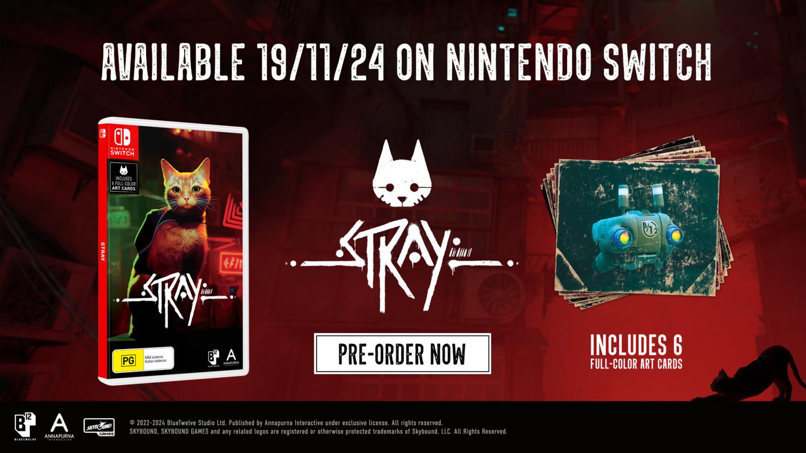 Lost, alone and separated from family, a stray cat must untangle an ancient mystery to escape a long-forgotten city.Stray is a third-person cat adventure game set amidst the detailed, neon-lit alleys of a decaying cybercity and the murky environments of its seedy underbelly. Roam surroundings high and low, defend against unforeseen threats and solve the mysteries of this unwelcoming place inhabited by curious droids and dangerous creatures.See the world through the eyes of a cat and interact with the environment in playful ways. Be stealthy, nimble, silly, and sometimes as annoying as possible with the strange inhabitants of this mysterious world.Along the way, the cat befriends a small flying drone, known only as B12. With the help of this newfound companion, the duo must find a way out.Stray is developed by BlueTwelve Studio, a small team from the south of France mostly made up of cats and a handful of humans.