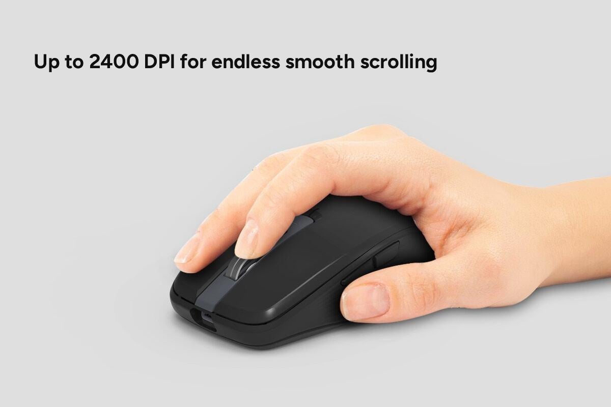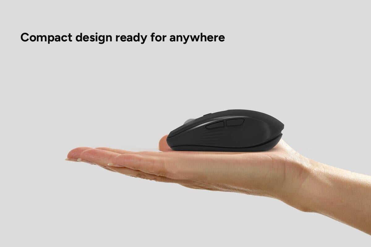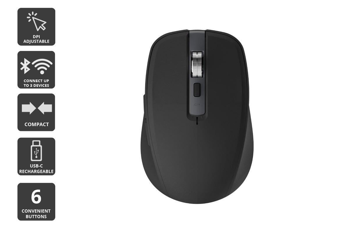 Be ready to work under any circumstance with the Kogan™ MX Anywhere Wireless Mouse. Precision meets portability in this compact powerhouse, designed for those who demand the best in tech on the go.* _Up to 2400 DPI for precision tracking._ Enjoy flawless control and accuracy.* _6 convenient buttons._ Easy digital navigation.* _USB-C rechargeability._ Fast and easy charging with modern devices.* _700mAh battery offers extended use._ Power through your projects without pause.* _Multi-device connectivity._ Connect to up to 4 devices simultaneously. Unparalleled connectivityConnect to up to four devices simultaneously with this mouse’s 2.4GHz and Bluetooth 5.1 capabilities, letting you seamlessly switch between them with a click of a button. Wirelessly connect to three Bluetooth devices and one via a USB receiver, ensuring that you can work across multiple devices with ease, offering a smooth and integrated workflow.Precision with every movementThis wireless mouse is engineered for those who appreciate precision in every task. With up to 2400 DPI across four adjustable modes, this mouse ensures that every movement is tracked with pinpoint accuracy. Whether you're navigating through intricate designs or editing detailed documents, this mouse offers the control you need to work efficiently and accurately. Its compact size doesn't compromise on performance, making it the perfect companion for professionals on the move.Designed for the modern professionalSay goodbye to single-use batteries and hello to rechargeability. Equipped with a USB-C charging port, this mouse aligns with the latest technology standards, ensuring you can easily charge it alongside your other modern devices. With 700mAh battery capacity, you’ll have less time tethered to a charging cable and more time being productive.*Technical Specifications*Connections* USB Interface: USB Type-CConnectivity* Bluetooth: 5.1* Wi-Fi Frequency Band: 2.4GHz* Wireless: 3 devices via Bluetooth | 1 device via 2.4GHz USB receiver* Wireless Range: 10mDetails* DPI Range: 800, 1200, 1600, 2400 (adjustable)Dimensions* Dimensions: 10 × 6.5 × 3.4cm* Power Cable Length: 80cm* Weight: 72gFeatures* Colour: BlackFunctions and Features* LED Indicator Light: YesGeneral* Keys: 6 (mute design)* Material: ABS + Metal roller* Sensor Type: PixArt 3212* Type: Wireless MouseMouse* Wireless Report Rate: 125HzPower* Battery Capacity: 700mAh* Battery Type: Rechargeable Polymer battery* Battery Voltage: 3.7VWarranty* Manufacturer Warranty: 1 Year