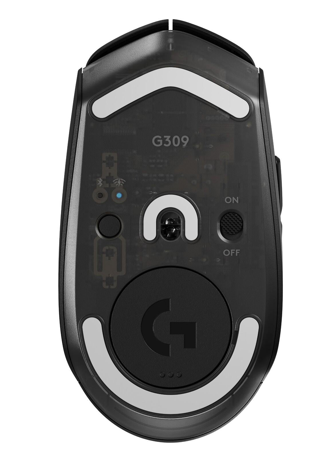 G309 LIGHTSPEED is designed for optimized gaming performance. This lightweight gaming mouse delivers advanced wireless tech and innovation for all gamers to play at their max potential.* Max Play: LIGHTSPEED wireless and Bluetooth connectivity* Max Speed: LIGHTFORCE hybrid switches* Max Precision: HERO 25K sensor* Min Weight: 86g with a single AA battery* Min Charging: 300+ hrs. with a single AA batteryFeatures:* Max Play: Switch between the robust yet low latency LIGHTSPEED wireless and Bluetooth connectivity on this wireless gaming mouse for total wireless fexibility* Min Weight: Logitech G309 LIGHTSPEED is a lightweight gaming mouse that weighs just 86 g with the included AA battery or 68 g (battery-free) with use of POWERPLAY wireless charging system* Max Precision: HERO 25K sensor on this wireless gaming mouse tracks exactly to the sub- micron with zero smoothing for precise wireless gaming* Min Charging: 300+ hours with AA battery or unlimited battery life with POWERPLAY, so you can focus on the game, not your battery life* Max Speed: LIGHTFORCE optical- mechanical switches with optical speed, mechanical feel, and optimized gaming performance* Max Control: Up to 6 programmable buttons for personalized gameplay and custom shortcutsTechnical specs:* LIGHTFORCE SWITCHES hybrid optical-mechanical switches* LIGHTSPEED wireless technology* Up to 5 onboard memory profles1 Software available for download at logitechg.com/ghub PTFE Feet* Battery life – Battery life may vary based on user and computing conditions* Constant motion 300+ hrs with LIGHTSPEED Wireless, 600+ with Bluetooth* Sensor: HERO 25K* Resolution: 100 – 25,600 dpi* Max. acceleration: >40G2* Max. speed: >400 IPS 3Tested on Logitech G240 Gaming Mouse Pad* Zero smoothing/acceleration/fltering* Physical specs:* Length: 120 mm, Width: 64 mm, Height: 39 mm, Weight with* POWERPLAY: 68g, Weight with AA Battery: 86gSystem requirements:* What you need: ** Computer with USB-A port and Windows® 10 or above, macOS 11 or later* Bluetooth: ** Bluetooth-enabled device with Windows® 10 or above, macOS 13 or above, Chrome OS, or Android 4.3 or later, iOS 10 or later* (Optional) Internet access for Logitech G HUB software\*Battery life may vary based on user, battery discharge characteristics and computing conditions\*Internet access for Logitech G HUB (optional)*IN THE BOX** G309 LIGHTSPEED Gaming Mouse* LIGHTSPEED USB Receiver* USB Cable Extender* Grip Stickers* AA battery* IID* QSG