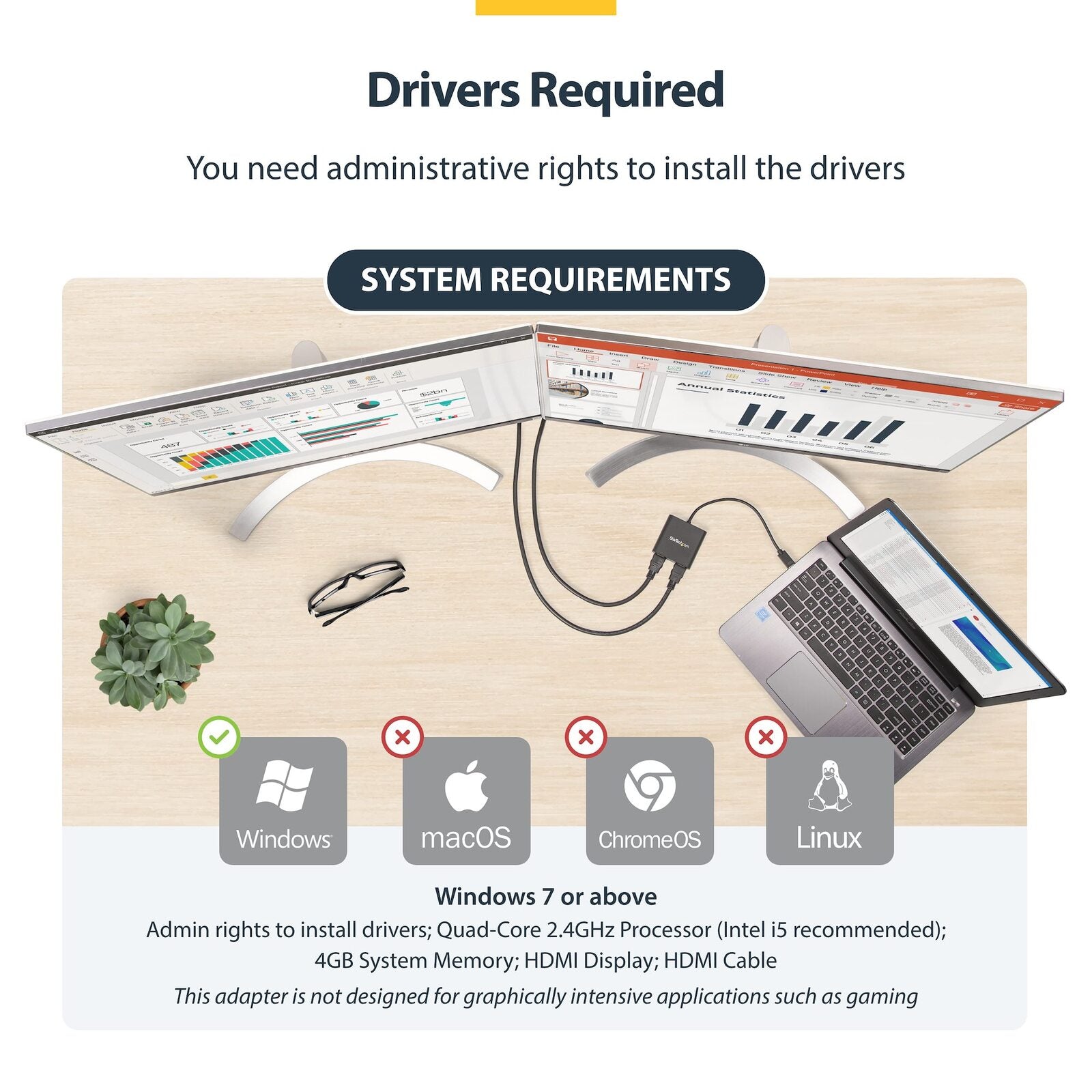 USB to 2× HDMI Monitor Converter for Windows (no support formacOS/ChromeOS/Linux) – TAA