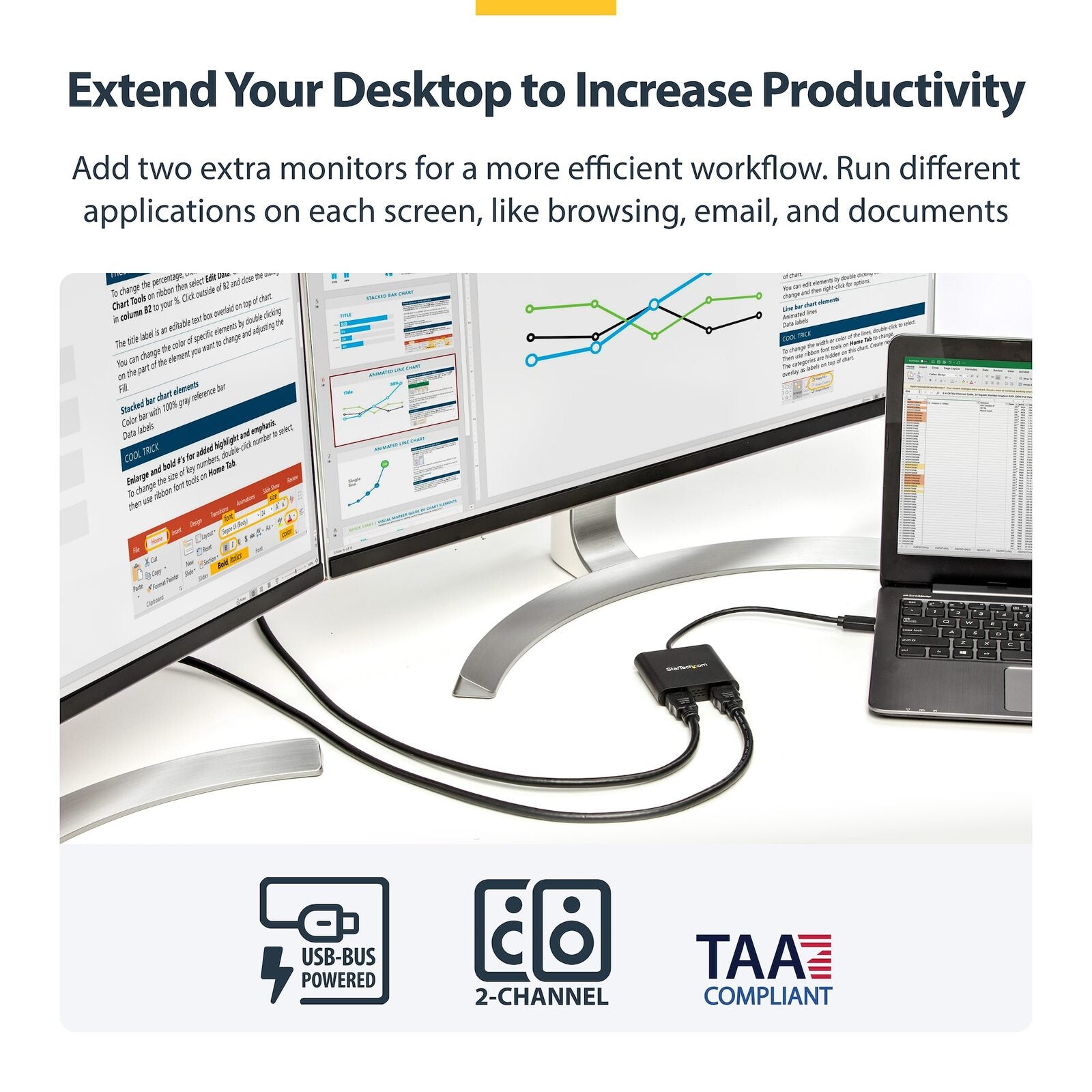 - INCREASE YOUR PRODUCTIVITY: USB to Dual HDMI monitoradapter lets you extend your desktop by adding up to two HDMI monitors to yourlaptop or desktop computer; Ideal for your workstation setup in the office orworking from home