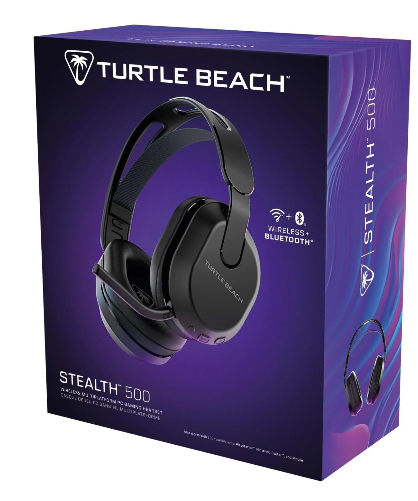 The Turtle Beach Stealth 500 for Windows PCs, PS5 & PS4 & mobile devices redefines what an “entry-level” wireless gaming headset is capable of. Easily toggle between 2.4GHz wireless & Bluetooth connections using the QuickSwitch button. A staggering battery life of up to 40 hours and an ultra-lightweight, floating headband design with memory foam cushions will keep you locked in the game for hours in complete comfort. Precision-tuned, amplified 40mm drivers along with extensive audio tuning in the Swarm II desktop & mobile apps deliver ultra-clear, customizable audio quality, optimized for spatial audio. Chat with ultra-clear voice accuracy thanks to the omni-directional flip-to-mute microphone.*Step up to Wireless Freedom*Play your favorite games on PS5 & PS4, PC, & mobile devices with low-latency 2.4GHz wireless and Bluetooth 5.2 connectivity*Best-In-Class Battery Life*With up to 40 hours of battery life and quick charge you can enjoy long gaming sessions without worrying about running out of power.*QuickSwitch Technology*Easily switch between 2.4GHz wireless & Bluetooth connections with the built-in QuickSwitch button. A simple press of the button switches your audio & chat source between wireless & Bluetooth devices, enabling you to effortlessly transition between connections.*Non-Stop Comfort*An ultra-lightweight, floating headband & plush memory foam ear cushions provide a fit so comfortable, you’ll forget you’re even wearing a headset.*Precise, Amplified Audio*40mm drivers are meticulously tuned for precise and powerful spatial audio quality, giving you a distinct audio advantage over the competition.*Anywhere Audio Customization*Connect to the Swarm II desktop software for PC or mobile app for iOS or Android to access a 10-band audio EQ, audio & microphone presets, and more\*. Plus, you can update the firmware easily using Swarm II to ensure your Stealth 500 is always up to date.\*Select advanced audio features available in 2.4GHz wireless mode may not be supported in Bluetooth mode.*Ultra-Clear, Flip-to-Mute Mic*Chat with precise voice accuracy thanks to the omni-directional flip-to-mute mic that seamlessly integrates into the headset when not in use.*Easy Access to Audio Presets*Enhance your gameplay experience at the touch of a button with four Turtle Beach audio presets including Bass Boost, Signature Sound, Treble Boost, and Vocal Boost.*Advanced Superhuman Hearing*Advanced Superhuman Hearing brings the same great battlefield advantage of Superhuman Hearing, but now with additional adjustability. In the Swarm II app, toggle between three different preset levels and adjust the intensity of Superhuman Hearing, to dial-in the perfect sound for a wide range of games.*Variable Mic Monitoring*Avoid shouting thanks to mic monitoring (or sidetone) which allows you to hear your voice through the headset and adjust monitoring levels on-the-fly in the Swarm II app.Package Contents:• Turtle Beach Stealth 500 Wireless Gaming Headset• USB Wireless Transmitter• 0.7m / 2.3ft Charging Cable (USB-A to USB-C)• Quick Start GuideView our Headphones Return Policy [Here](https://help.mightyape.co.nz/hc/en-nz/articles/115012111088-Returns-Policy)