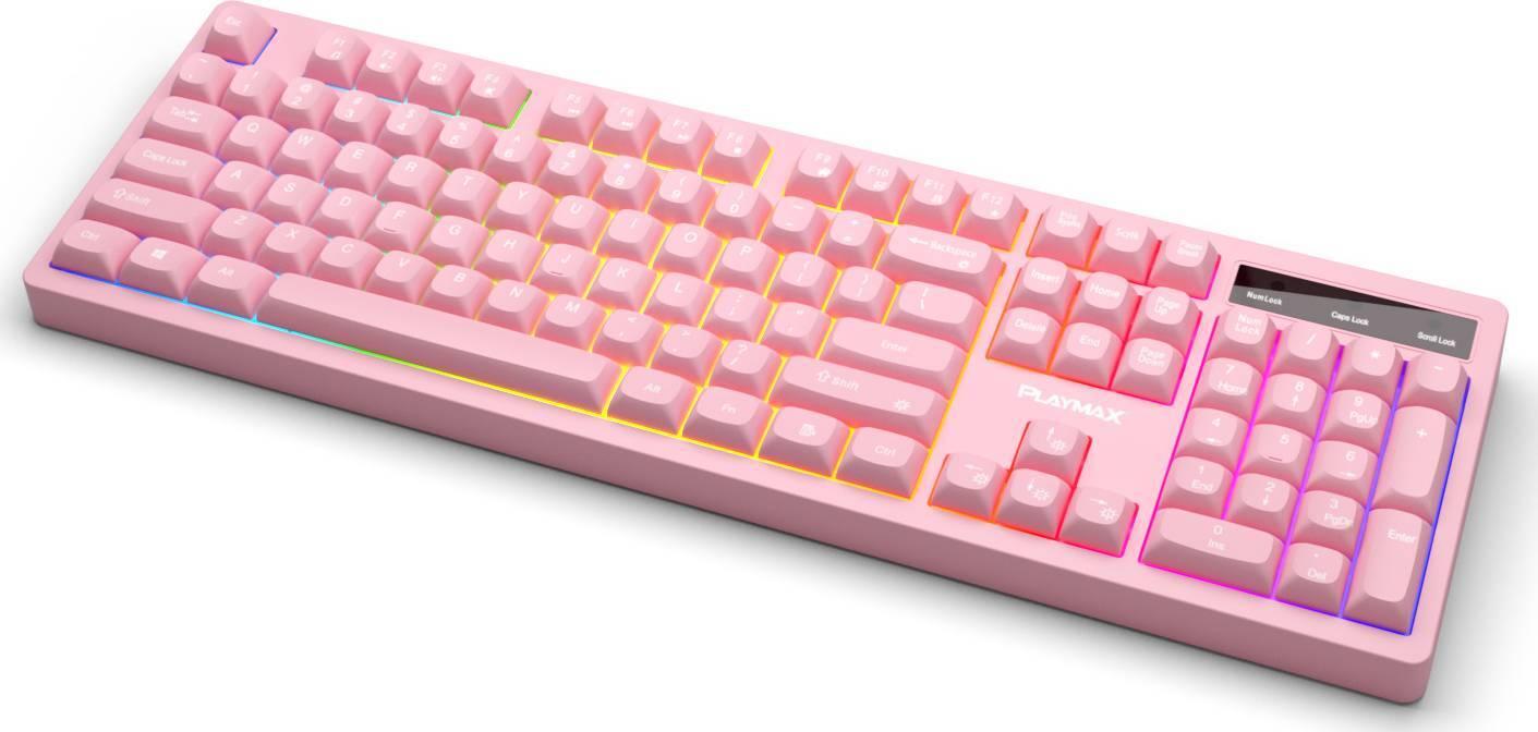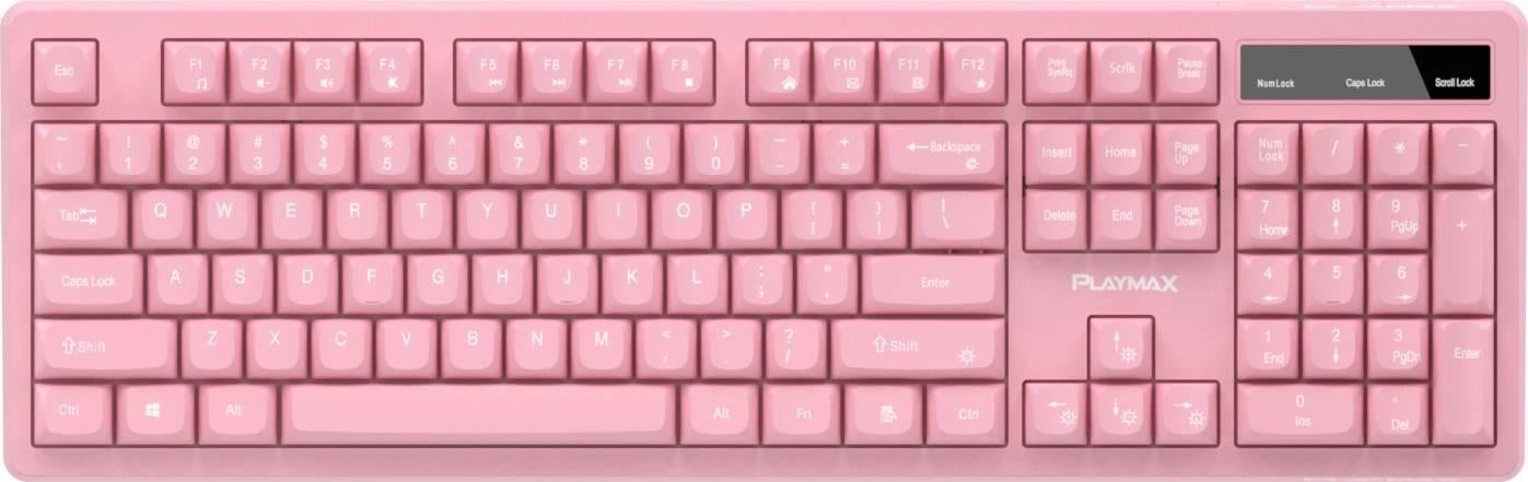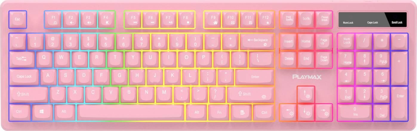 Playmax Taboo Keyboard (Pink)Features:* All-key chromatic customisable backlit: Able to adjust the brightness and backlit style as you need.* Full size: full-sized Mechanical keyboard with 104 keys* 19 anti ghosting keys: ideal for various games. You can carry out quick operations on music play, volume control and internet browsing* Full set of extra keycapsSpecs:* Interface type: USB* Size: 448_139_40mm* Key Number: 108* Operating Voltage: 5V* Operating Current: <200mA* Key Life: 60,000,000 times* Cable Length: 1700mm