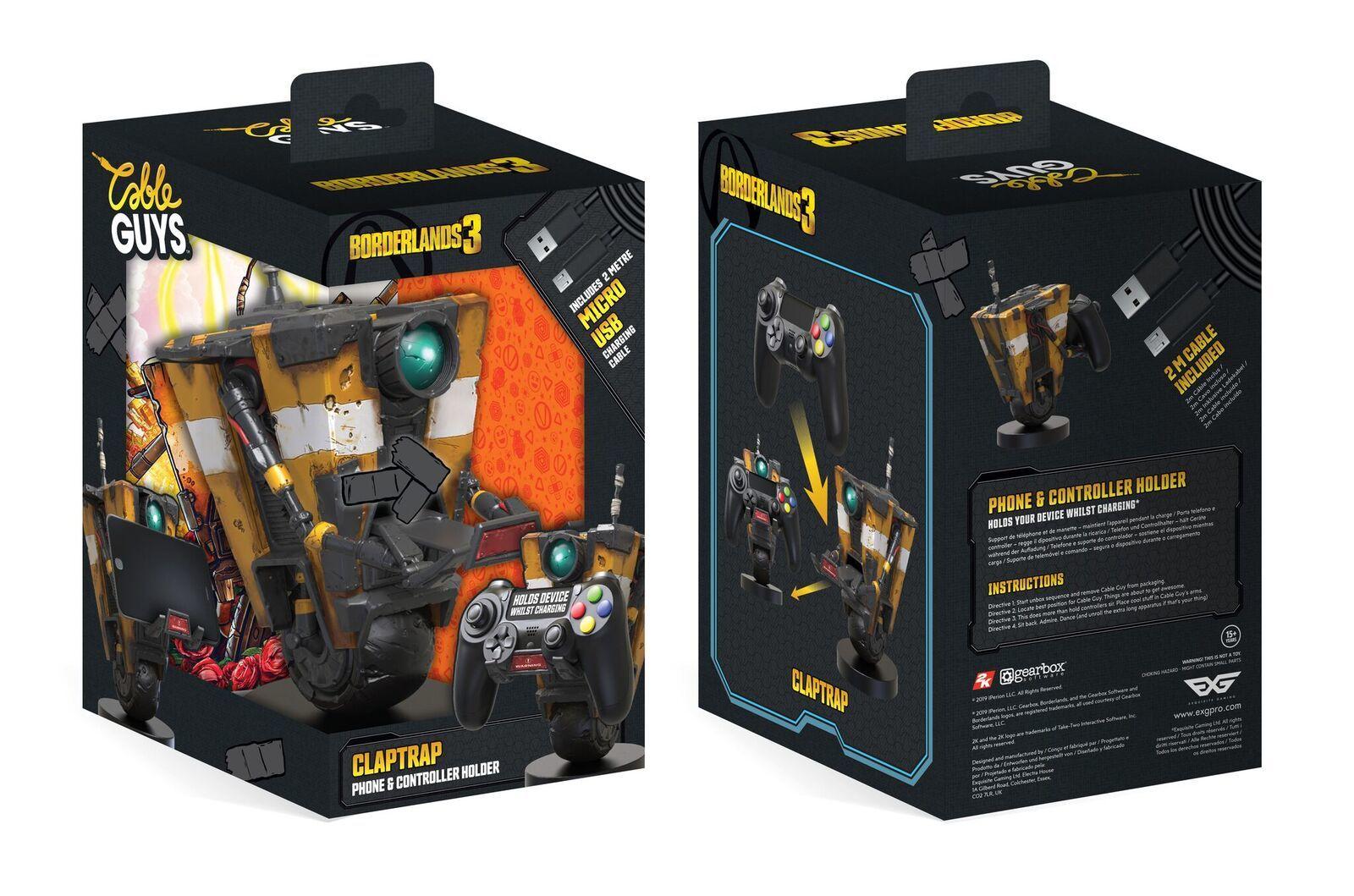 Cable guy designed Claptrap from Borderlands, 8” tall and coming with a 2 Metre Type C cable for charging your device.Compatible with Playstation controllers, Xbox controllers and most smartphones.Please note: The red warning sign actually will need to be pulled out and this is where the controller will sit.Please note: Controller and USB cable are not included