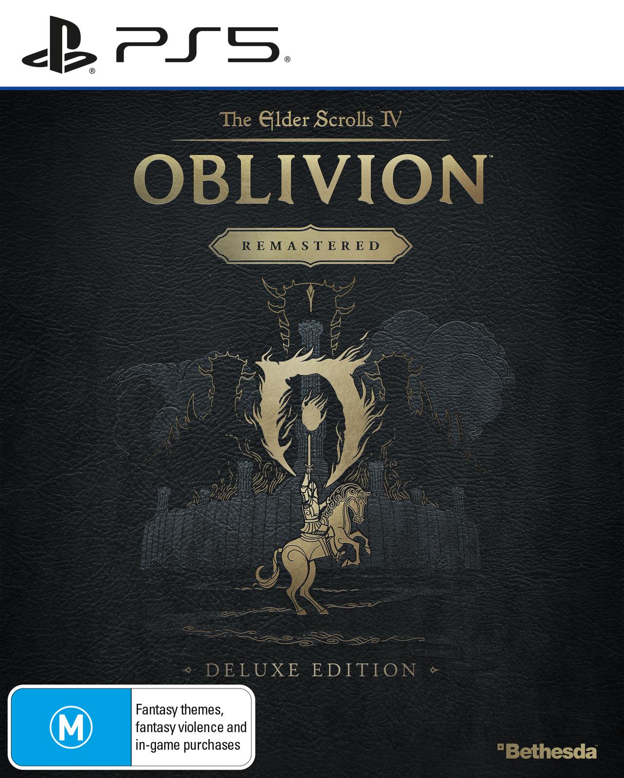Oblivion Remastered Deluxe Edition includes:* Base Game* DLC Content* Digital artbook and soundtrack* Weapon & Armour sets* Story ExpansionThe Elder Scrolls IV: Oblivion Remastered modernises the 2006 Game of the Year with all-new, stunning visuals and refined gameplay. Explore the vast landscape of Cyrodiil like never before and stop the forces of Oblivion from overtaking the land in one of the greatest RPGs ever from the award-winning Bethesda Game Studios.Features:* Rediscover Cyrodiil: Journey through the rich world of Tamriel and battle across the planes of Oblivion where handcrafted details have been meticulously recreated to ensure each moment of exploration is awe inspiring.* Navigate Your Own Story: From the noble warrior to the sinister assassin, wizened sorcerer, or scrappy blacksmith, forge your path and play the way you want.* Experience an Epic Adventure: Step Inside a Universe Bursting with Captivating Stories and Encounter an Unforgettable Cast of Characters. Master Swordcraft and Wield Powerful Magic as You Fight to Save Tamriel from The Daedric Invasion.* The Complete Story: Experience everything Oblivion has to offer with previously released story expansions. Shivering Isles, Knights of the Nine, and additional downloadable content included in The Elder Scrolls IV: Oblivion Remastered.