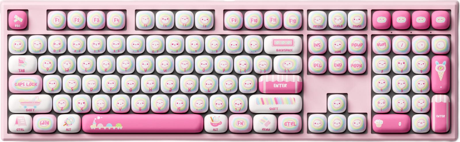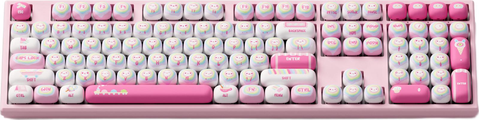 *Akko x MonsGeek Rainbow Marshmallows Keyboard features rainbow-color Marshmallow with playful emojis**Features:** MOG Profile PBT Dye-sub keycaps;* Multi-modes (Bluetooth 5.0, 2.4Ghz, and Type-C);* Programmable RGB Backlit with MonsGeek Driver.*PBT Dye-Sub Keycaps*Made through dye-sub process with durable PBT materials that legends will not fade easily.*Multi-Modes*The MG108B Rainbow Marshmallows can be connected to multiple devices through bluetooth 5.0, multi-host 2.4Ghz (with a receiver), and wired Type-C modes with easy switch.*Adjustable Heights*Adjustable height to enhance your typing experience.The keyboard is supplied with a tilting stand with 3 levels of height adjustment,which allows it to be adapted to the individual needs of the user.