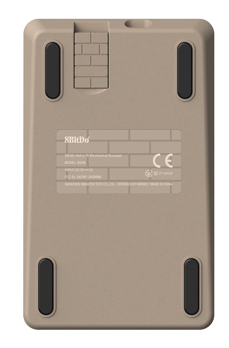 A 2-in-1 PC numpad and calculator. Compatible with Windows and Android. Available in N, Fami, C64, and M editions.*Inspired by the Classics*The perfect companion to the 8BitDo Retro Mechanical Keyboard.*A Numpad and Calculator Combined*A 2-in-1 numpad. Switch between a PC numpad and a standard calculator with just a click.Activate Windows Calculator app with the dedicated shortcut button.*Retro LED Display*The numpad features a nine-digit seven-segment display.Simple and highly visible.*Ultra Compatibility*Connect via Bluetooth, 2.4G wireless, or wired.Special Features:* 2 modes: PC numpad mode / Standard calculator mode* Windows Calculator app shortcut button* Dye-sub PBT keycaps.(N, Fami, and M editions)* Double-shot ABS keycaps. (C64 edition)* 18 keys* Kailh Box White switches V2* Hot-swappable PCB* Support n-key rollover* Support 8BitDo Ultimate Software V2 (for firmware update only)* Top mount styleCompatibility:* Windows 10(1903) and above* Android 9.0 and aboveDimension / Weight:* 170_104_45.5mm* 300gConnectivity:* Bluetooth 5.0* Wireless 2.4G* Wired USBBattery Type / Battery Life:* 1000mAh Li-on battery, rechargeable* 160 use hours with 4 hours charging timeIncludes:* 8BitDo Retro 18 Mechanical Numpad* 2.4G adapter* USB cable* Instruction manual