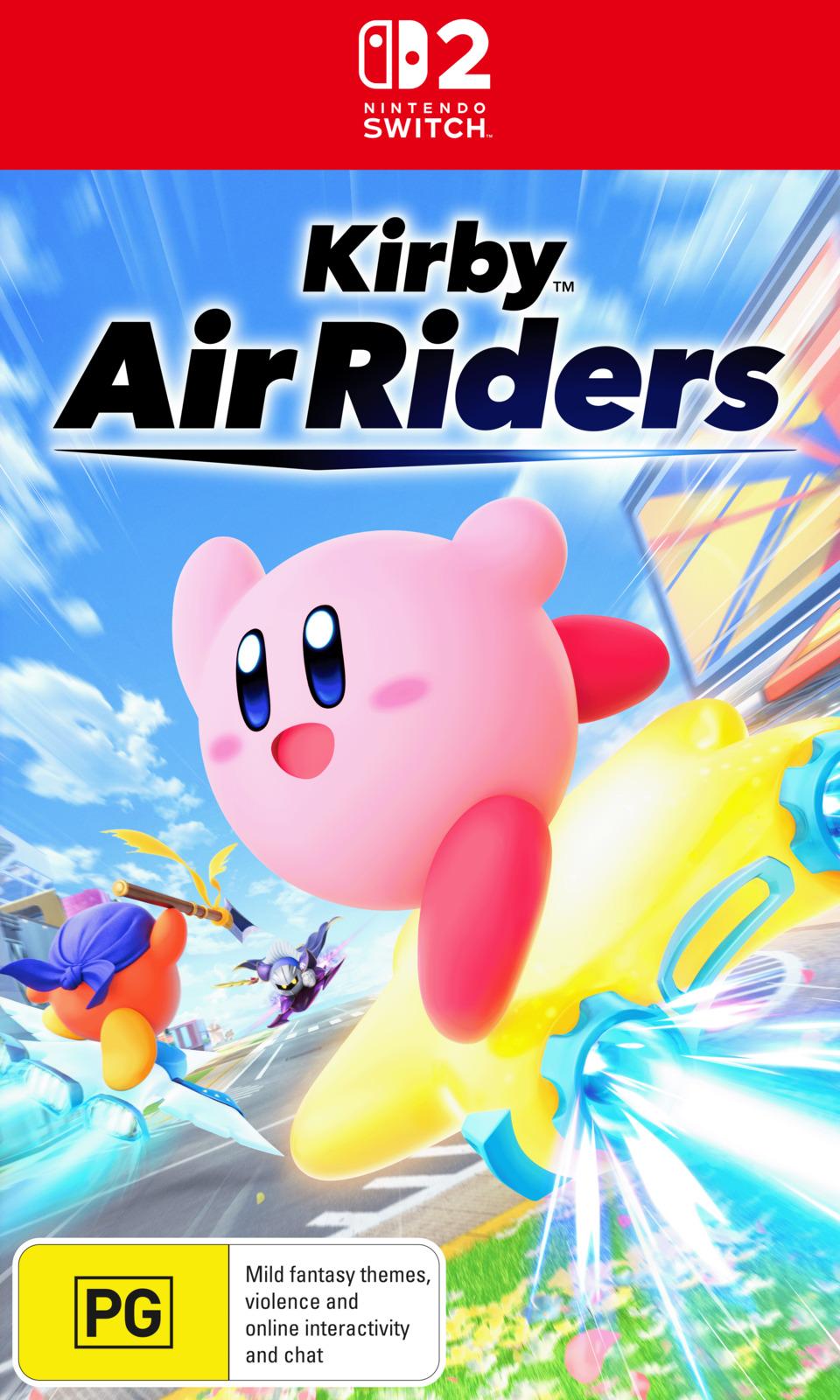 Kirby Air Riders is a wild action experience across land, sea and air that puts you in control of frenetic Kirby fun. Enhancing and expanding upon Kirby Air Ride, originally released for Nintendo GameCube in Europe in 2004, this new game will now give players a roster of riders to choose from, each with their own distinct characteristics and abilities. In addition, there are new Air Ride machines, returning game modes, and new Special moves.Features:* Riding Techniques: Each Air Ride machine, or “machine” for short, has different forms and traits. They usually hover above the ground and move forward automatically – no need to press any buttons or tilt the left Joy-Con 2 control stick forward to accelerate. Use the left stick to change direction by tilting it left or right.* Boost Charge: By pressing the B Button, your machine will hit the ground, and you’ll start a Boost Charge and brake. Releasing the button activates a Boost Dash. As Mr. Sakurai explained, this is more than just a speed boost – by tilting the left stick and holding the Boost Charge button through sharp corners, you can perform drift manoeuvres which help you gain even more of a speed advantage.* Specials: It takes more than speed and deft manoeuvring to get ahead of the competition, however. The Y Button is your “Special button,” and it activates your character’s unique Special move. Attack your rival riders and enemies to fill up your Special Gauge and, once full, unleash your Special. While most characters have one distinct Special, Kirby has four different Special moves – one for each colour Kirby you can play as. Combine certain Specials with attack techniques like Quick Spin, which is activated by wiggling the control stick, and you’ll be on your way to victory.* Riders: Kirby Air Riders adds a strategic element to its mayhem by adding more importance to your choice of rider. Each rider in the game has their own unique traits which can impact their machine’s performance, including weight, durability, Specials, close range attacks and more. These factors can either give them an advantage or cause more unpredictability during the action depending on the environment you’re in. In fact, this is why Air Ride mode has you select your course first, then the rider and machine you want to use. In addition to the well-balanced pink puffball, your roster of riders includes familiar faces from the world of Kirby, like Meta Knight, King Dedede, Bandana Waddle Dee, as well as enemies in the Kirby series like Cappy, Chef Kawasaki, Starman and more. And to keep you moving forward and keep your opponents on their toes, Kirby Air Riders also lets you mix and match riders and machines.* Machines: Air Ride machines are built for more than just speed. Each machine, like the riders, can even sustain different amounts of damage. Most machines will also glide through the air if you jump from a ramp or other structure, and you can control your machine by tilting the left stick up or down to ascend or descend. Make a perfect landing and you’ll be rewarded with more speed. You can also perform rail grinds, drifts and other manoeuvres.* Copy Abilities: To level the playing field, Kirby Air Riders gives all the riders the ability to inhale or capture to copy an enemy’s abilities. Use these newly acquired abilities to temporarily gain additional ways to attack or increase your speed.* Skyah: City Trial is now located on a huge floating island called Skyah. Here, you’ll drive around freely collecting power-ups, attacking opponents to damage (and steal) their machines or cause them to drop power-ups you can then scoop up for yourself, all with the objective of upgrading your machine as much as possible. You start out with a small, weak machine, but through finding power-ups, attacking opponents and swapping to other machines, you can upgrade your ride. There are also random Field Events that occur throughout this phase. Some of these events pop up unexpectedly somewhere on the Skyah map, and you’ll need to hustle to that location to participate. Events include challenges like Short Race, where you’ll race through a sectioned-off area of the map, with power-ups awarded based on how you finish. There is also Dustup Derby, where the goal is to battle your opponents to knock them out and earn more power-ups. Be warned, these events may also involve the appearance of familiar bosses from the world of Kirby, including Kracko and Dyna Blade. This is only the first phase of the City Trial experience, and you’ll have five minutes of intense vehicle action to secure your machine and as many power-ups as you can. After that, it’s on to phase two…* Stadiums: Take your powered-up machine to a Stadium and compete to be crowned the winner. Each Stadium includes a different challenge that players will strategically select based on the power-ups you or your opponents have gathered. Some Stadiums will even be recommended for you based on your machine’s stats, in case you have any trouble deciding which one to take on. In Kirby Air Riders, you can also battle friends via local wireless\*1 with up to eight players, or online\*2 with up to 16 players. Use GameChat\*3 to connect with your friends via video or voice chat to enhance the fun.* Air Ride mode: In this mode, up to six riders can compete to cross the finish line first. Attack opposing riders and by hitting them you’ll gain small stars that increase your speed. What makes this experience unique is that you’ll compete getting speed boosts by attacking. So, go ahead and cut loose on your rivals. You can also follow the Star Slide – you speed up by following behind other riders and collecting the trail of stars in their wake. These extra speed boosts will help you leave your opponents in the (star) dust.* Lessons: With all the different riders, machines, techniques and game modes – you may want a little time to practice. The Lessons mode allows you to learn the 