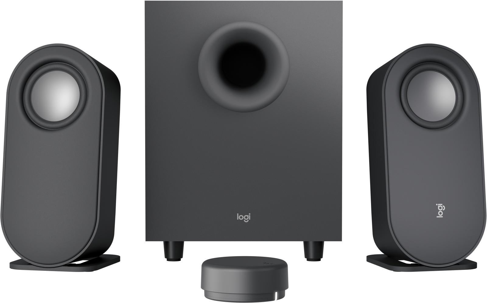 *DIAL INTO GREAT SOUND … WIRELESSLY*80 watts of power joins precise digital signal processing (DSP) to deliver immersive, lifelike sound. Hear the crisp high notes, the powerful mid and low-range, and all the bass you can handle.The wireless control dial and dual-position speakers let you control your sound and style. Adjust bass and volume from across the room. Position speakers horizontally or vertically. Connect via Bluetooth, micro USB, 3.5mm input, or all three—and switch between them. Even from across the room.*BASS MEETS CLARITY*20 watts of bass, plus DSP takes you to that sweet balance of depth and clarity. The ported, down-firing subwoofer adds “boom” to music, movies, and games, while maintaining a rich, crisp sound.*GET IMMERSED*Experience immersive, 80 watts lifelike sound—from crisp high notes to powerful mid and low-range notes—with no compromises on bass. DSP combined with unbridled power gives you a balanced sound profile and enhanced bass, so you can hear everything across the sound spectrum.*DIAL IN. ROCK OUT.*What can 20 meters do for you? A 20-meter wireless range lets you adjust your sound from across the room, all with the wireless control dial. Press it and spin it to play, pause, mute, and adjust volume and bass. Do it all from the control dial. It’s easy, and you don’t even have to get off the couch.* Mute/Unmute works when connected via 3.5 mm input. Play/ Pause/ Skip/ Rewind work when connected via USB or Bluetooth. Audio controls may vary when playing certain LIVE contents under USB/ Bluetooth.*THIS WAY. THAT WAY. YOUR WAY.*Say goodbye to “boxy.” These oval-shaped speakers are ready to stun in sleek graphite gray, blending into your desktop environment without getting in the way. Lay them upright or horizontally to get the look you want. They’re so compact, you can even sneak them under your monitor to save space. Use them to curate your space.*CONNECT 3 WAYS*You’ve got options. Connect up to three devices via Bluetooth, micro USB, and the 3.5 mm input. The wired input button on the bottom of the dial switches between wired (3.5 mm and micro USB) connections. Quickly switch back to Bluetooth by pressing the Bluetooth button.*SPECIFICATIONS** *Dimensions:*** *Satellite:**** *Height:* 199.9 mm*** *Width:* 93.9 mm*** *Depth:* 85.2 mm*** *Weight:* 389.6 g** *Subwoofer:**** *Height:* 240 mm*** *Width:* 234 mm*** *Depth:* 180 mm*** *Weight:* 2450.6 g** *Wireless Control Dial:**** *Diameter:* 69.9 mm*** *Height:* 29.4 mm*** *Weight:* 51.8 g** *System Requirements:* Works with Windows®, Mac,or Chrome™ based computer via AUX, USB-A, Bluetooth and iOS or Android™ Bluetooth enabled devices.* *Technical Specifications:*** *Total watts (Peak):* 80W** *Total watts (RMS):* 40W** *Subwoofer:* 20W** *Satellites:* 2 × 10W** *3.5 mm input:* 1** *Micro-USB input:* 1** *Bluetooth:* 5.0** *Control:* Power, volume, bass control, mute, unmute, track forward, rewind, Bluetooth pairing, source switch buttons .etc, on wireless control.** *Additional features:**** 20-meter wireless range **** Wireless range may vary with environmental conditions.*** 12-month battery life (2 AAA included) **** Based on using the dial 16 times, everytime with normal press or rotation per day. Actual battery life will vary with use, settings and environmental conditions.* *Package Contents:*** Two satellite speakers** Subwoofer** 3.5 mm cable** User documentation *** USB cable is not included and must be purchased separately.