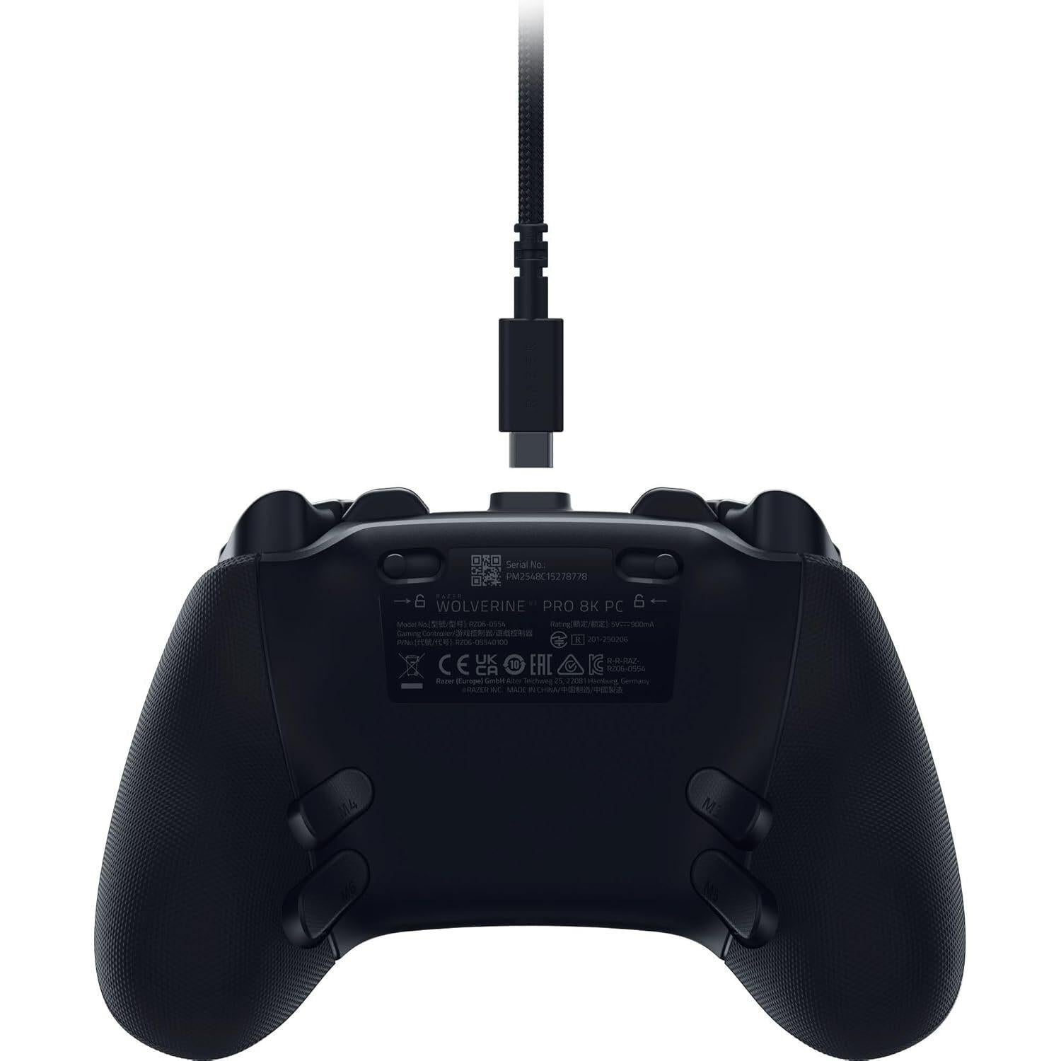 *FOR THE PRO*Stay one step, one shot, and one level above the competition with the Razer Wolverine V3 Pro 8K PC—our first ever native 8000 Hz wireless esports controller. Be the one that others fear to face with speed, control, and precision that’s unlike any other.PC (Windows 11 64-bit or higher)*RAZER 8K Hz HYPERPOLLING TECHNOLOGY*Experience ultra-responsive performance with a true 8000 Hz polling rate. Harness its blistering speed in wired or wireless mode and make every millisecond count.*TMR THUMBSTICKS WITH SWAPPABLE CAPS*Fine-tuned for the most precise in-game control, dominate with laser-sharp aim using anti-drift magnetic TMR thumbsticks that have evolved beyond typical Hall Effect designs. Change them up to suit your playstyle with an interchangeable design that includes 2 types of thumbstick caps.*RAZER’S LIGHTEST WIRELESS ESPORTS CONTROLLER*Whether you’re hopping into your first scrim or in the deciding game of a championship, experience zero hand fatigue with a form factor designed and refined with top esports players—making it the ultimate wireless esports controller for competitive play.*4 MOUSE CLICK BACK BUTTONS & 2 CLAW GRIP BUMPERS*Enjoy the same ultra-responsive actuation found in our top gaming mice with 4 buttons built into the controller’s ergonomic, rubberized handles—topped with 2 claw grip bumpers for even more control.*RAZER PRO HYPERTRIGGERS*Always be first to fire with lightning-fast mouse clicks found in our top gaming mice or enable full analog control for enhanced precision—all with a flick of a switch. A key feature that elevates it above other wireless gaming controllers.*RAZER MECH-TACTILE PBT ACTION BUTTONS & 8-WAY FLOATING D-PAD*Place your trust in solid doubleshot PBT buttons that hold up under intense use, complete with hybrid microswitches to ensure quick, responsive inputs that feel just as comfortable to press on a PC esports controller.*PRO-LEVEL CUSTOMIZATION*Dial in your thumbstick sensitivity, customize and save up to 4 onboard profiles, and map any key from your keyboard to the controller’s 6 programmable buttons.*CARRYING CASE AND 2 M BRAIDED CABLE*Bring your A-Game anywhere with a custom-built carrying case that holds your controller and all its accessories, including 2 replaceable thumbstick caps and a 2 m braided cable.Tech specifications:* CONNECTIVITY ** Razer Hyperspeed Wireless via included dongle** Wired Connection* SYSTEM REQUIREMENT ** PC (Windows 11 64-bit or higher)** Internet connection for Razer Synapse 4* CONFIGURATION APP – Yes* MULTI-FUNCTION BUTTONS ** 4 Mouse Click Back Buttons** 2 Claw Grip Bumpers* RAZER CHROMA LIGHTING – None* MECHANICAL ACTION BUTTONS – Razer Mecha Tactile PBT Action Buttons* QUICK CONTROL PANEL – None* INTERCHANGEABLE DPAD – None* INTERCHANGEABLE THUMBSTICKS – TMR analog thumbsticks* TRIGGER STOPS – 2 Hall Effect Analog triggers with Mouse Click trigger stops* AUDIO OUTPUT – None* MICROPHONE INPUT – None* BATTERY LIFE – None* APPROXIMATE WEIGHT – 220 g / 0.49 lb* DIMENSIONS ** Length: 156.7 mm / 6.16 in** Width: 105.7 mm / 4.16 in** Height: 65 mm / 2.55 in* ARTWORK CUSTOMIZATION – None* CARRY CASE – Carrying case for controller and accessories