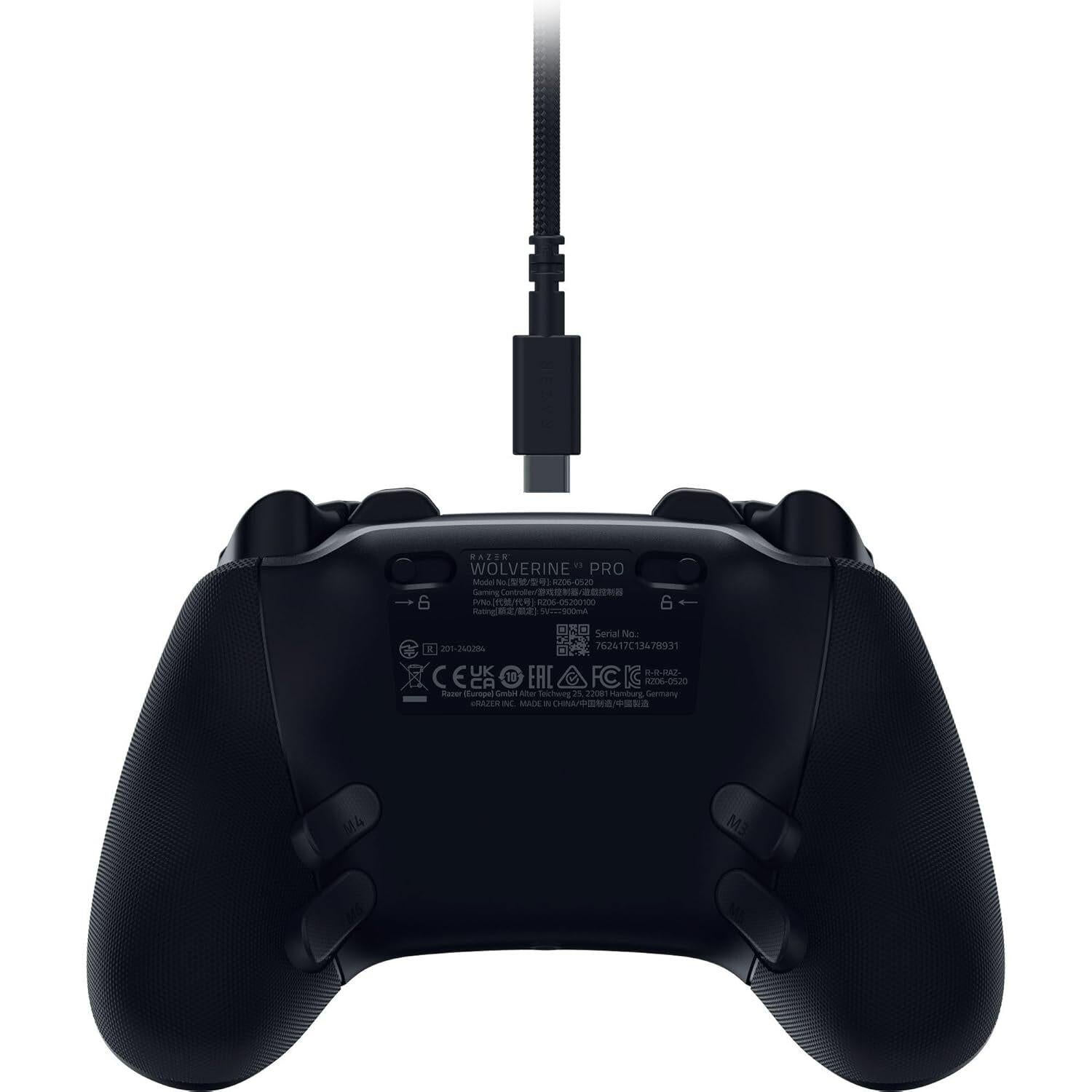Stay one step, one shot, and one level above the competition with the Razer Wolverine V3 Pro—the definitive wireless esports controller. Officially licensed by Xbox, play like the world’s best on console and PC with speed, control, and precision that helps you clutch up for the win.*4 MOUSE CLICK BACK PADDLES & 2 CLAW GRIP BUMPERS*6 Remappable Buttons to Outplay Them All – Enjoy the same ultra-responsive actuation found in our top gaming mice with 4 paddles built into the controller’s ergonomic, rubberized handles—topped with 2 claw grip bumpers for even more control.*RAZER PRO HYPERTRIGGERS*Instant Response with Lightning-Fast Mouse Click Triggers – Toggle between instant actuation with zero travel time and ultra-precise analog control via two easy-access slide-locks on the controller’s underside. Be fully immersed in the action and feel every trigger pull with integrated haptic vibrations.*HALL EFFECT PRECISION THUMBSTICKS*Anti-Drift Accuracy with Customizable Sensitivity – Experience analog thumbsticks that are not only more accurate than traditional models, but are smoother, lighter and more durable thanks to their anti-friction rings and pro-grade materials. Change them up to suit your playstyle with an interchangeable design that includes 2 types of thumbstick caps.*RAZER HYPERSPEED WIRELESS*Lag-free, Esports-Grade Performance – Delivering an ultra-low-latency 2.4 GHz connection via its USB Type A dongle, experience fast, reliable performance that meets the demands of the most intense competitive players on Xbox and PC.*RAZER MECHA-TACTILE ACTION BUTTONS & 8-WAY FLOATING D-PAD*Ultra-Fast Actuations with Tactile Feedback – By combining the speed of microswitches with the cushioned comfort of a rubber membrane, compete with quicker inputs that feel just as comfortable to press.*PRO-LEVEL CUSTOMIZATION FOR XBOX & PC*Via the Razer Controller App – Set your thumbstick sensitivity and create custom button layouts using our dedicated app. Store a personalized profile and be ready for any type of competition.Tech specs:* Connectivity: * HyperSpeed Wireless via included dongle * Wired Connection * 3 m / 10 ft USB C to USB A* System requirement: * Xbox or PC (Windows 11 64-bit or higher) * Internet connection for Razer Controller app* Razer Chroma Lighting – Yes* Mechanical Action Buttons – Razer Mecha Tactile Action Buttons* Multi-Function Buttons * 4 Mouse Click Back Paddles * 2 Claw Grip Bumpers* Quick Control Panel – None* Interchangeable Dpad – None* Interchangeable Thumbsticks – Anti-drift Hall Effect analog thumbsticks* Trigger Stop – 2 Hall Effect Analog triggers with Mouse Click trigger stops* Microphone Input – Yes* Audio output – Yes* Battery life – About 20 hours* Configuration app – Yes* Artwork customization – None* Carry case – Carrying case for controller and accessories* Dimensions (approximate) * Length: 156.7 mm / 6.16 in * Width: 105.7 mm / 4.16 in * Height: 65 mm / 2.55 in* Approximate weight – 304 g / 0.67 lb