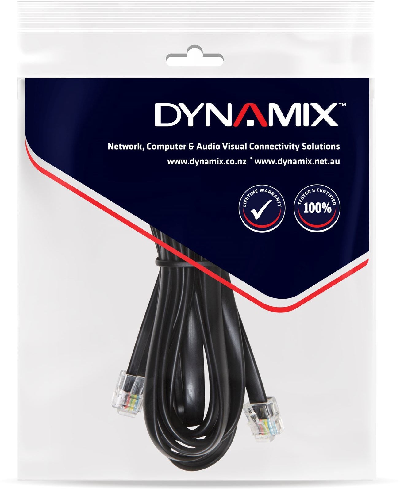 Our DYNAMIX telephone cable has RJ12 connectors at both ends and is designedto connect your phone, modem or fax machine to the wall jack. Its 6-wireconstruction handles dual phone lines while the heavy duty PVC jacket protectsthe cable’s integrity. The cable has 6 pins that are connected straightthrough, that is contact 1 at one end joins with contact 1 at the other end,contact 2 to contact 2 etc.