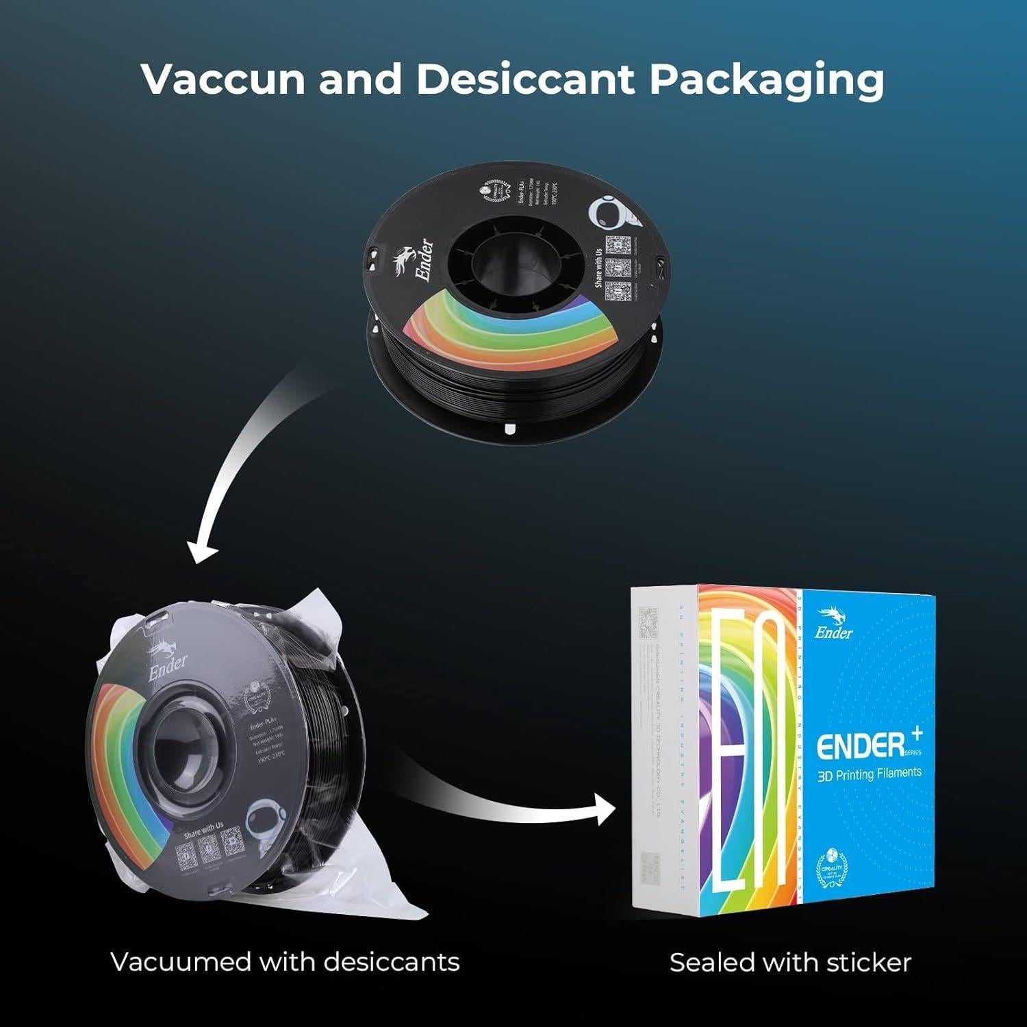 *Creality Ender 1.75mm PLA+ 3D Printing Filament 1kg** Strong Toughness without BreakageCompared with other 1.75 PLA filaments, the Official Creality Ender-PLA+ enhances the toughness of the filament. It can be repeatedly bent with less susceptibility to breakage, and the firm model is firmer and not easy to damage. The 3D filament is suitable for 99% of the needs of DIY enthusiasts.* High-quality and Easy to PrintNo clogging, no bubbling, no knotting, smooth printing! Designed and Manufactured with a Clog-Free patent to guarantee a smooth and stable printing experience. The good fluidity enables the PLA+ filament bundle to be extruded evenly and smoothly during printing. No clogging to the nozzle, and improving the printing success rate.* Accuracy & ConsistencyThe PLA Plus, 1 kg spool (2.2lbs), of 1.75mm diameter, Minimum dimensional tolerance ±0.02mm. It has wide compatibility making it suitable for almost 1.75mm FDM 3D printers due to the small diameter error.* Environmentally Friendly MaterialsMade from environmentally friendly materials, the 3D printer's filament does not have odor, pollution or toxicity during the printing.* Vacuum-sealed with DesiccantPreventing moisture absorption, allowing for high-detail resolution for more printing scenarios, such as educational toys, machine parts, home accessories and functional parts etc.*Highlights** Stronger Toughness without Breakage* High stability brings higher print quality* Neat Winding with Smooth Printing* Flow Printing without Clogging* Unlimited 3D Models and Play with 3D Printing Cloud Communities*Specifications** Filament Type: PLA+* Diameter: 1.75mm±0.02mm* Weight: 1kg/2.2lb* Recommended Nozzle Temperature: 190 °C – 230 °C* Heated Bed Temperature: 0 – 60°C* Benefits: High Toughnedd | No Clogging | No Bubbling | No Knotting | Smooth Printing* Recommend Print Surface: Carborundum Glass Platform, PEI Platform, Crepe Tape, PVP Glue* Certification: RoHS, REACH, MSDS