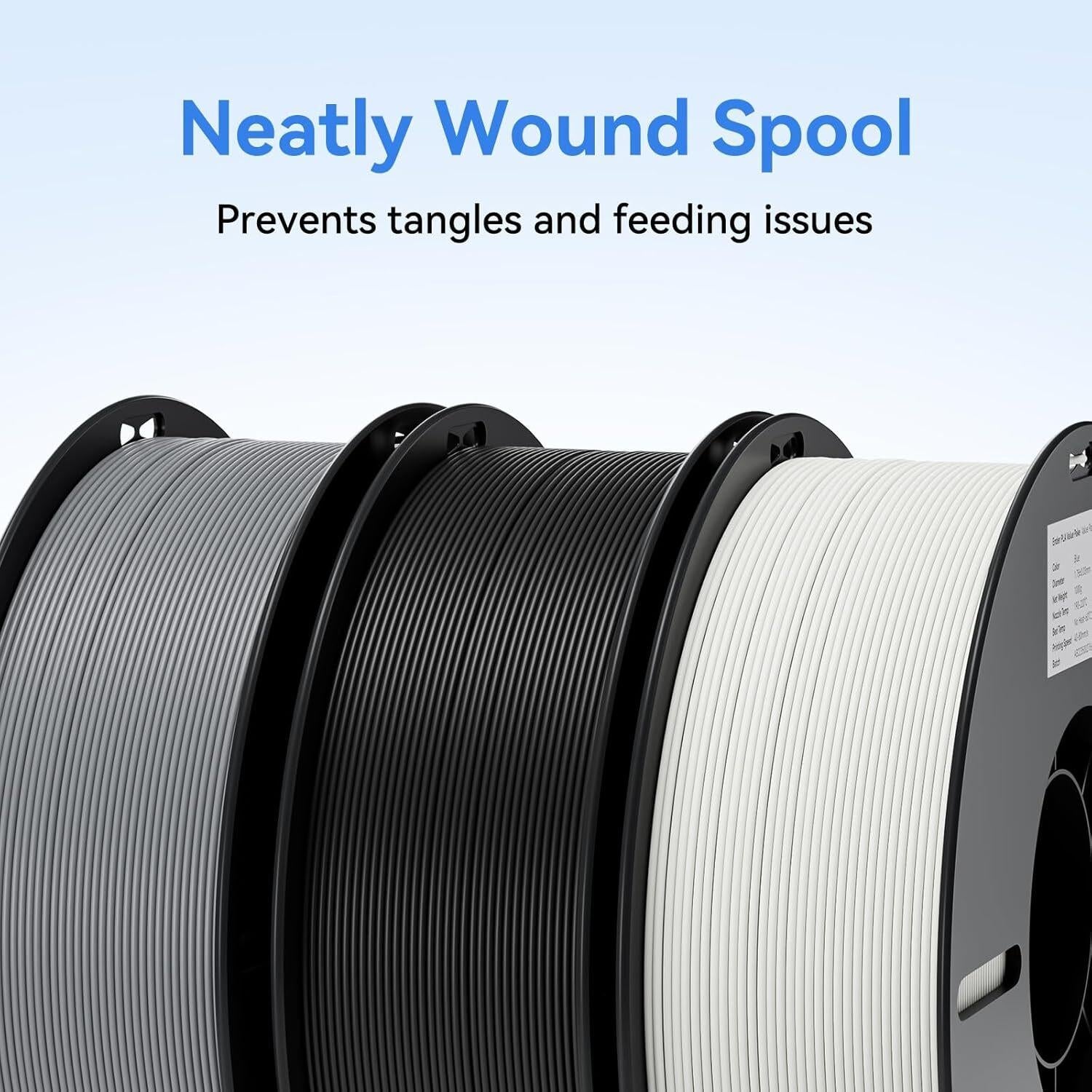 *_High Compatibility – Compatible with ALL FDM printers on the market_** Cost-effective Value Pack Ever: This 3D printer PLA filament 1.75mm offers great value with classic grey and white colors; Save money without compromising creativity* Clog-free and Bubble-free: Our patented process ensures smooth, stable printing with these 3d printer PLA filaments; They are dried for 24 hours and vacuum-sealed with a desiccant for optimal performance (Note: Use within recommended temperature range)* Less-tangle and Toughness: Mechanical winding and inspection ensure neat, tangle-free pla filaments, reducing the chances of snapping and breaking; Larger spool design for smoother feeding and enhanced material durability* Dimensional Accuracy and Consistency: Advanced systems ensure these PLA filaments maintain 1.75mm diameter with accuracy of +/- 0.02mm; Each spool contains 1kg, total 2kg(4.4lbs)* High Compatibility: Compatible with most FDM 3D printers and 3D pens; Made from renewable plant-based materials, offering a responsible choice for your printing needs.*Features:** Better Toughness* Tangle Free* No Clogging* No Bubble* Minimal Warping* High Purity*Specifications:** Brand: Creality* Item Weight: 5.68 pounds* Product Dimensions: 8.26 × 8.26 × 5.51 inches* Item: Ender Value Pack Grey & White* Color: Grey & White* Material Type: Polylactic Acid* Size: 2Kg* Filament Diameter: 1.75mm±0.02mm* Printing Temperature: 190–230℃* Hotbed Temperature: 0℃-60℃* Printing Speed: 40–80mm/s* Tensile Strength: 34Mpa* Application Scenarios: Animation figure, toy, artwork* Features 1: Most Cost-effective PLA* Features 2: Stability, High quality