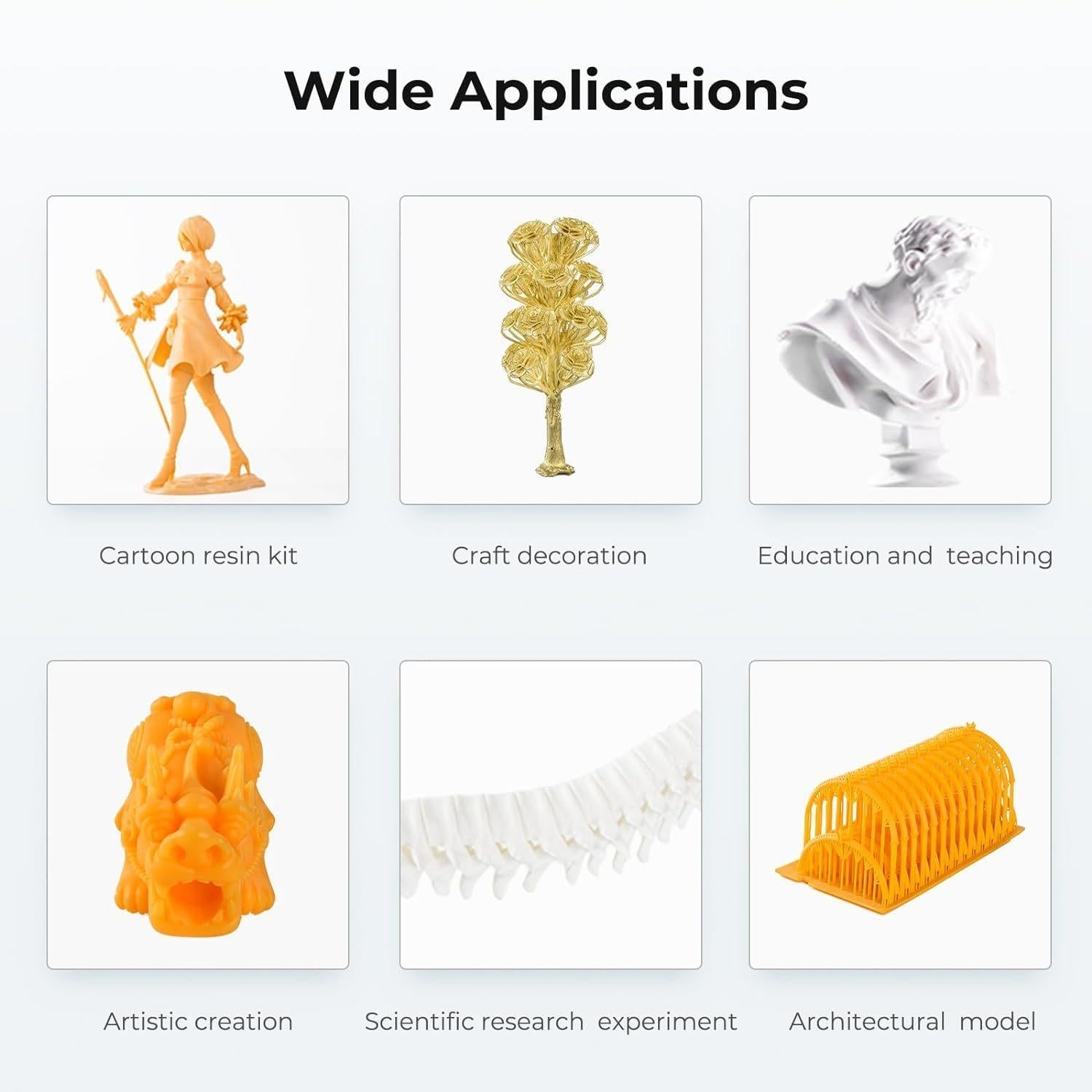 *Creality Standard Rigid LCD UV Resin 1kg – Black** Ultra High PrecisionCreality 3d printers resin prints the models with low shrinkage during the photocuring process, which ensures high precision and smooth surface with great resolution.* Not Easy to BreakCreality 3d printer resin grey has a good combination of High strength and toughness, which brings easy removal of the model and delivers accurate printing details.* Light OdorCreality UV 3d printers resin insists on strictly selected material, so the smell is relatively light, and the resin odor will quickly dissipate after printing.* Fast Curing and Great Stability3d printer resin grey was designed to significantly reduce printing time with its excellent fluidity. Meanwhile its great stability* Wide ApplicationsGiven the outstanding performances, Creality 3d printer resin is compatible with 90% LCD Resin Printers, Especially Creality Printers.*Highlights** Affordable and Cost Effective for Beginners* Compatible with 90% LCD Resin Printers, Especially Creality Printers.* High Precision* High Strength and Toughness* Strictly Selected Material, Low Odor*Specifications** Applicable Wavelength: 405nm* Density: 1.14g/cm³* Molding surface hardness: 85–90D