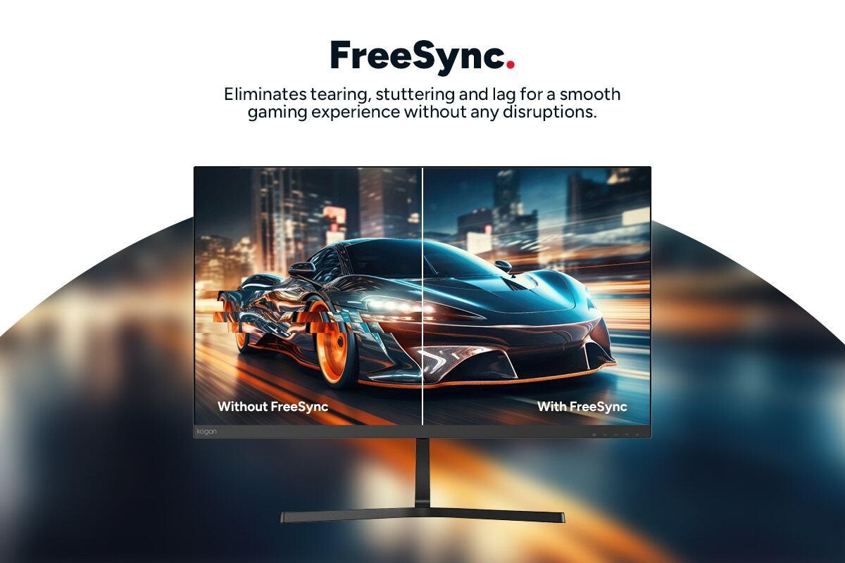 Experience immersive visuals and seamless performance with the Kogan™ 27" Full HD Frameless FreeSync Monitor. Designed for work, gaming and entertainment, its sleek frameless design and smooth refresh rate deliver outstanding clarity and style.* _27" Full HD display._ Enjoy stunning 1920×1080 resolution visuals.* _Frameless design._ Maximises screen space for a modern aesthetic.* _100Hz refresh rate._ Smooth transitions for gaming and multitasking.* _14ms response time._ Reduces motion blur for minimal ghosting.* _4000:1 contrast ratio._ Provides vivid colours and deep blacks.* _FreeSync technology._ Eliminates screen tearing and stuttering.*100Hz refresh rate for smooth motion*The 100Hz refresh rate ensures fluid motion for gamers and multimedia enthusiasts. Whether you’re navigating fast-paced games or enjoying action-packed movies, you’ll experience smoother transitions without lag or interruptions.*Tear-free FreeSync visuals*FreeSync technology synchronises the monitor’s refresh rate with your GPU, reducing screen tearing and stuttering. This ensures a flawless viewing experience, whether you’re working on projects or indulging in your favourite games.*Immersive Full HD experience*The 27" Full HD screen delivers crisp, detailed visuals with a 1920×1080 resolution. Perfect for work, gaming and streaming, this monitor ensures every image is sharp, vibrant and true to life, enhancing your overall viewing experience.*Frameless design for a modern setup*The frameless design not only elevates your desk’s aesthetic but also maximises your screen space. Ideal for multi-monitor configurations or those who love minimalist setups, it ensures a seamless and distraction-free workspace.*Specifications:*Audio* Audio Output: Yes* Impedance: 8Ω* Speakers: 2 × 1WDimensions* VESA Wall Mount Pattern: 75 × 75mm* Weight: 3.8kg* With Stand: 539 × 168.6 × 416mm* Without Stand: 539 × 41.3 × 320.4mmDisplay* Brightness: 300cd/m²* Colour Temperature: Warm: 6500K | Standard: 7500K | Cold: 9300K* Colours: 16.7M* Monitor Colour Gamut: NTSC 72% | sRGB 99% | Adobe RGB 75% | DCI-P3 75%* Monitor Resolution: Full HD* Monitor Size: 27"* Native Aspect Ratio: 16:9* Panel Type: VA* Refresh Rate: 100Hz* Resolution: 1920 × 1080* Response Time: GTG: 14ms | OD: 5ms* Static Contrast Ratio: 4000:1* Viewing Angle: 178° (V) / 178° (H)Features* Colour: Black* Flicker-free: Yes* FreeSync: Yes* Freesync Range: 60–100Hz* Low Blue Light: Yes* OnScreen Control (OSC): Yes* Over Drive: YesFunctions and Features* LED Indicator Light: YesGeneral* Screen Size: 27"* Type: MonitorInputs* HDMI: 1 × 1.4* VGA (D-sub): 1Performance* Tilt Angle: –5° ~ 15°Power* Output: 12V, 3A* Power Consumption: 36W* Power Supply: 100–240V, 50/60Hz* Standby Consumption: < 0.5WWarranty* Manufacturer Warranty: 1 Year
