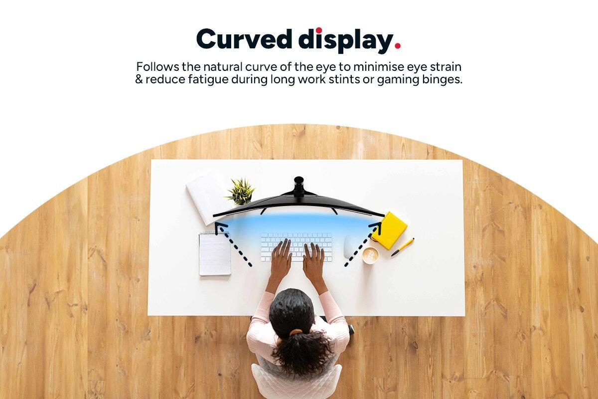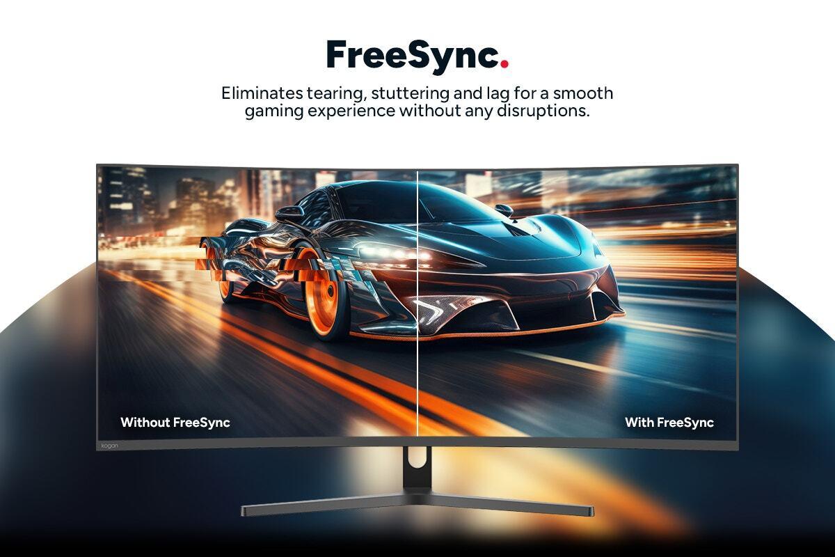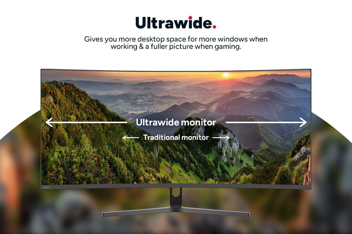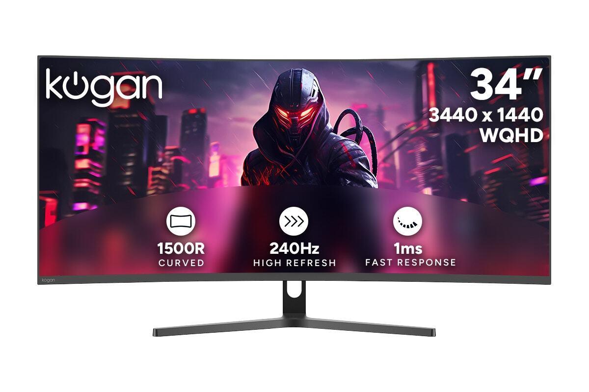 Immerse yourself in next-level gaming with the Kogan™ Infinity 34" Curved Ultrawide WQHD Gaming Monitor. Boasting a curved screen, stunning visuals and lightning-fast performance, it’s the ultimate tool for competitive and immersive gameplay.* _34" WQHD display._ Ultrawide 3440 × 1440 resolution for stunning clarity.* _1500R curvature._ Deeply immersive visuals and reduced eye strain.* _240Hz refresh rate._ Ultra-smooth gameplay with minimal lag.* _1ms MPRT response time._ Quick response for sharp, blur-free visuals.* _3000:1 contrast ratio._ Richer blacks and vibrant colours for realistic visuals.* _21:9 aspect ratio._ Expansive viewing area for a competitive edge.* _FreeSync support._ Seamless, tear-free gaming experience. Immersive 1500R curvatureThe 1500R curvature of this gaming monitor wraps around your field of view, providing an immersive and comfortable viewing experience. Whether you're gaming, working or streaming, the curved design enhances every moment with depth and clarity.Stunning ultrawide WQHD resolutionWith its 3440×1440 resolution, this monitor delivers breathtaking WQHD visuals. The ultrawide 21:9 aspect ratio ensures a wider field of view, perfect for gaming precision or multitasking efficiently.Lightning-fast 240Hz refresh rateSay goodbye to motion blur and lag with an immense 240Hz refresh rate. This ultra-smooth performance ensures you never miss a moment, delivering a competitive edge in fast-paced gaming scenarios.Crisp, rapid response for sharp gameplayWith a 1ms MPRT response time, this gaming monitor eliminates motion blur for sharp, precise visuals during intense action. Quick response rates mean every frame is delivered with clarity, enhancing your reaction times.Seamless gaming with FreeSync technologyFreeSync technology ensures tear-free, stutter-free performance for smooth, uninterrupted gameplay. Experience the fluidity of seamless transitions, giving you an edge in every battle.Vivid colours and contrast for realistic graphicsThe 3000:1 contrast ratio brings your games to life with deep blacks, vibrant colours and incredible detail. Combined with WQHD resolution, every scene is displayed with remarkable accuracy and realism.*Technical Specifications*Audio* Impedance: 4Ω* Speakers: 2 × 3WDimensions* VESA Wall Mount Pattern: 75 × 75mm* Weight: 5.3kg* With Stand: 807.8 × 190.4 × 440­.7mm* Without Stand: 807.8 × 117.7 × 361­.8mmDisplay* Actual Contrast Ratio: 3000:1(ANSI)* Brightness: 300cd/m²* Colour Temperature: Warm: 6500K | Standard: 7500K | Cold: 9300K* Colours: 16.7M* Curvature: 1500R* Monitor Colour Gamut: NTSC 73% | sRGB 120% | DCI-P3 90%* Monitor Resolution: WQHD* Monitor Size: 34"* Native Aspect Ratio: 21:9* Panel Type: VA* Refresh Rate: 240Hz* Resolution: 3440 × 1440* Response Time: 1ms* Type: Curved Ultrawide Display* Viewing Angle: 178° (V) / 178° (H)Features* Colour: Black* Flicker-free: Yes* Freesync Range: 48–240Hz* Low Blue Light: Yes* OnScreen Control (OSC): YesFunctions and Features* LED Indicator Light: YesGeneral* Type: Gaming MonitorInputs* DisplayPort: 2 × 1.4* HDMI: 2 × 2.1Outputs* Headphone Jack: YesPerformance* Tilt Angle: –5° ~ 15°Power* Output: 12V, 5A* Power Consumption: 60W* Standby Consumption: < 0.5WWarranty* Manufacturer Warranty: 1 Year