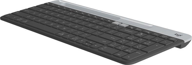*MINIMALIST. MODERN. MULTI-DEVICE.*_Own your space with the K580 Slim Multi-Device Keyboard_Make any space modern, and multi-device with the K580 Slim Multi-Device – an ultra-thin and design-forward keyboard perfect for typing your ideas on your computer and switching to writing a text on your smartphone.The ideal companion for your everyday multitasking.*MODERN, SLIM DESIGN*Get a clean, modern desk setup and make a visual statement thanks to the ultra-slim profile and minimalist design of the K580 Slim Multi-Device.*MAXIMIZE YOUR SPACE.*The compact design helps you get the most out of your workspace. With a number pad and all the keys you need for great productivity right at hand, there’s less arm extension, so you can work comfortably for longer. 15 FN keys for easy access and media shortcuts.*WORK SEAMLESSLY WITH EASY-SWITCH™*A computer keyboard that also works with your smartphone and your tablet. The Easy Switch™ buttons let you switch typing between two devices with the same keyboard.Start typing a report on your computer, then switch to type a message on your phone — which can be placed in the built-in phone cradle for better multitasking.*CONNECT THE WAY YOU WANT*Choose to connect via Bluetooth® wireless technology and/or the 2.4 GHz USB receiver stored in the battery door. For a strong, secure wireless connection with a 10m range and a cable-free desk set-up.*WHISPER-QUIET, FLUID, COMFORTABLE TYPING*Low-profile key switches provide fluid laptop-style typing and ultra-quiet work experience for you and those around you.*WORRY-FREE BATTERY LIFE*Enjoy 24-month battery life thanks to an auto-sleep feature that kicks in when you’re not typing for a worry-free experience.*FAMILIAR TYPING WITH ANY OS*Use it to type on your multiple devices — desktops, laptops, tablets, and smartphones. The layout is compatible with Windows®, macOS and smartphone commands.*SPECIFICATIONS** *Dimensions:* * *Unifying receiver:* * *Height x Width x Depth:* 14.4 mm x 18.7 mm x 6.1 mm * *Weight:* 2 g * *Keyboard Dimensions:* * *Height x Width x Depth:* 143.9 mm x 373.5 mm x 21.3 mm * *Weight (with batteries):* 558 g (including battery) * *Slot Dimensions:* * *Height x Width x Depth:* * 11 mm x 175.7 mm x 10.3 mm * with a hook that holds the phone at 6.2 mm from the bottom.* *System Requirements:* * *Unifying™ Receiver:* * *Required:* Available USB port * Windows 10 or later, Windows 8, Windows 7 * macOS 10.10 or later * *Bluetooth:* * *Required:* Bluetooth Low energy technology * Windows 7, Windows 8, Windows 10 or later * macOS X 10.10 or later * iOS 5 or later, Android 5.0 or later * Works with Surface* *Technical Specifications:* * *Battery life Keyboard:* 24 months * *Battery type:* 2AAA (included) * *Wireless operating distance:* 10 m * *Wireless technology:* Logitech Unifying™ Receiver or Bluetooth low energy technology * *Unifying ready receiver:* Yes* *Package Contents:* * Keyboard * 2 AAA batteries (pre-installed) * Unifying USB receiver * User documentation