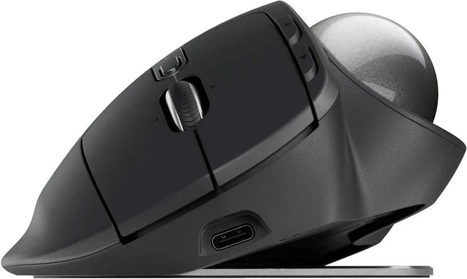 Experience peak comfort and performance with MX Ergo S advanced wireless trackball, certified by ergonomists, with a 20-degree tilt angle for less muscle strain in your forearm. Now with quiet clicks and quick USB-C charging.*Elevated comfort and precision*MX Ergo S, Logitech’s most advanced wireless ergonomic trackball yet, with a 20-degree tilt angle and 6 customizable buttons – now with quiet clicks and quick USB-C charging (cable not included).* *Maximize control. Minimize movement.:* Track precisely and effortlessly with thumb control, while your hand stays fully supported on the sculpted ergonomic design with a soft rubber grip – a good fit for medium to large-sized hands. Switch between speed and high-precision tracking with a tap of the DPI button.* *Tilt for more comfort:* MX Ergo S is certified by ergonomists, with a unique 20-degree tilt angle that encourages a better forearm posture and reduces muscle strain in the forearm by 27% for elevated comfort throughout the day.* *Smoother days, your way.:* Work faster with 6 customizable buttons and a DPI button to effortlessly switch cursor speed. Assign time-saving shortcuts, or Smart Actions tailored to your needs using the Logi Options+ App.* *Key Features:* * *Now with quick USB-C charging:* MX Ergo S is now compatible with USB-C charging (cable not included), with a full charge lasting up to 120 days and just a 1 minute charge for 24 hours of use. Compatible with any USB Type-C to USB Type-C or USB Type-A to USB Type-C cables, so you can use cable you already have in your home or at work. * *Now with quiet clicks:* Work without distraction with quiet clicks. Experience the same satisfying click feel on MX Ergo S but with 80% quieter clicks compared to MX Ergo. * *Built for advanced setups:* Connect up to 2 devices via Bluetooth or the included Logi Bolt receiver, and seamlessly switch between computers with the Easy-Switch button. MX Ergo S is compatible with Flow Technology, allowing you to work across devices and operating systems with the Logi Options+ App. Click and drag files across multi-OS devices.*Technical Specifications:** *Dimensions:* * *Height:* 132.5 mm * *Width:* 99.8 mm * *Depth:* 51.4 mm * *Weight (without metal plate/without receiver):* 164 g * *Weight (with metal plate/without receiver):* 259 g* *Sensor Technology:* * Logitech Advanced Optical Tracking * *Minimal and maximal value:* 512–2048 dpi* *Buttons:* * *Number of Buttons:* 8 (Left/Right-click, Back/Forward, Scroll-wheel with Right/Left-tilt and Middle-click, Precision Mode, Easy-switch) * *Number of customizable buttons:* 6* *Customization app:* * Supported by Logi Options+ on Windows and macOS * Requires Logi Options+ app, available for recent versions of Windows and macOS at logi.com/opti­onsplus.* *Battery type:* * Rechargeable with USB-C charging * *Battery life:* Up to 120 days on a single full charge; 1-min charge for 24-hour of use * Cable not included, USB-C cable available on logi.com for purchase* *Connection Type:* * Logi Bolt USB Receiver * Bluetooth Low Energy Technology* *Wireless range:* 10-m (33-ft) wireless range* *Sustainability:* * *Graphite plastics:* 20% post-consumer recycled material * *Paper Packaging:* FSC™-certified* *System Requirements:* * *Logi Bolt USB Receiver:* * *Required:* USB-A port , Windows 10, 11 or later , macOS 12 or later , Linux, ChromeOS * *Bluetooth:* * *Required:* Bluetooth Low Energy , Windows 10, 11 or later , macOS 12 or later , Linux , ChromeOS , iPadOS 15 or later , Android 12 or later * Internet access required to download optional customization app Logi Options+* *Warranty Information:* 1-Year Limited Hardware Warranty* *Part Number:* * *Graphite MX Ergo S:* 910–007261* *What's in the box:* * Advanced Wireless Trackball * Logi Bolt Receiver * Document * (Cable not included)