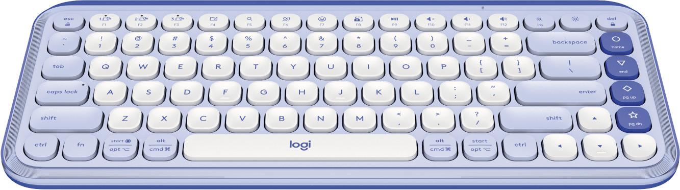 _A compact wireless keyboard with bold design and customizable Action Keys._Add an extra pop to your desk with POP Icon Keys, a compact keyboard with a bold aesthetic, great comfy typing, and customizable Action Keys.*Start with a POP*Own your space with the POP Icon Keys, a bold looking Bluetooth keyboard that allows for effortless productivity thanks to fully customizable Action Keys.* *ANYTHING BUT ORDINARY:* Dare to be different with the POP Icon Keys. The detailed transparent frame and fresh colors of this bold design made with recycled plastic will allow you to personalize any desk, wherever you get work done.* *GET COMFORTABLE:* The contoured, low-profile keys are designed to fit your fingers perfectly for precise, comfortable & quiet typing no matter what zone you’re in.* *LIFE IS EASIER WITH SHORTCUTS:* Seamlessly transition from “work mode” to “break mode” with the customizable Action Keys and Logi Options+ App. Access your suite of productivity tools, open up your favorite social media or launch your most used AI tools with a single key press.* *WORK SMARTER, NOT HARDER:* Productivity hacks at your fingertips. Set an Action Key to work mode and open your Microsoft/Google workspace apps or most used web tabs instantly. Get things done easily by accessing your AI tools with a press of an Action Key.* *TAKE A BREAK:* Done working? Just press the break mode key for instant access to Netflix, Spotify, or your favorite app to get your work-life balance right.* *HAVE IT YOUR WAY:* Further customize your Action Keys and FN keys with shortcuts such as instantly opening all your social media apps, copy/paste, and more to do things your way.* *DEVICE-HOPPING MADE EASY:* Pair to your laptop, tablet and/or phone and effortlessly switch typing between devices with a press of the Easy-Switch buttons. Compatible with Windows, macOS, iPadOS, iOS, and Android.* *Go for longer:* POP Icon Keys Bluetooth keyboard gives you hours of use, coming with a 3-year battery life 19Battery life may vary based on user and computing conditions. and auto-sleep power-saving mode.*Technical Specifications** *Typing Feeling:* Laptop-like keys* *Layout Size:* Minimalist* *Connectivity:* * Bluetooth * Compatible with Logi Bolt USB receiver (not included)* *Power:* 36 months* *Multi device:* Yes – Up to 3 devices – Easy-Switch technology* *Illuminated Keys:* No* *Palm rest for added comfort:* No* *Phone or Tablet stand:* No* *Customization App Support:* Yes with Logi Options+* *Compatibility:* Windows, macOS, Linux, ChromeOS, Android, iPadOS, iOS* *Dimensions:* * *Height:* 136.96 mm * *Width:* 324.51 mm * *Depth:* 22 mm * *Weight (including battery):* 530 g* *Customization app:* * Supported by Logi Options+ App on Windows® and macOS * _Customize the device by installing the Logi App for recent versions of Windows or macOS at app.logi.com_ * Requires Logi Options+ app, available for Windows and macOS at logi.com/optionsplus* *Battery:* * *Keyboard:* * *Battery type:* 2× AAA (included) * *Battery life:* up to 36 months * _Battery life may vary based on user and computing conditions._ * *Minimalist layout with 4 extra customizable Action Keys:* * Dual printed layout (Windows/Mac) * Easy-Switch Keys (connect up to 3 multi-OS devices) * On/Off power switch * Caps Lock and Battery indicator lights * Compatible with Logitech Flow technology enabled mouse * _Requires Logi Options+ app, available for Windows and macOS at logi.com/optionsplus_* *Sustainability:* * Made with recycled plastic * Responsible Packaging (FSC-certified packaging) * *Graphite & green; Graphite & white plastics:* 70% post-consumer recycled material * *Off-white & orange plastics:* 53% post-consumer recycled material * *Lilac & off-white plastics:* 48% post-consumer recycled material * *Rose & off-white plastics:* 37% post-consumer recycled material* *Warranty Information:* 1-Year Limited Hardware Warranty* *Part Number:* * *Rose & Off White English:* 920–013085 * *Lilac & Off White English:* 920–013086 * *Off White & Orange English:* 920–013084 * *Graphite & Green English:* 920–013083* *Compatibility:* * *Bluetooth:* * *Required:* Bluetooth Low Energy * *Customize the device by installing the Logi App for recent versions of Windows or macOS at app.logi.com:* * Windows 10, 11 or later * macOS 12 or later * *Logi App is currently not supported. The device’s basic functions will work without it.:* * Linux * ChromeOS * iPadOS * iOS * Android 12 or later* *In the Box:* * Keyboard * 2 X AAA batteries (pre-installed) * User documentation * Sticker * Warranty card for JP