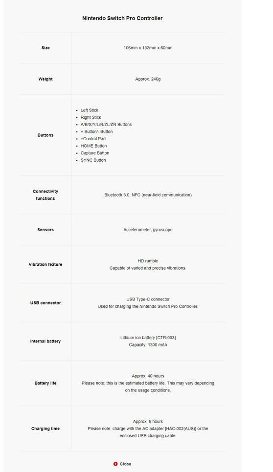 A wireless controller with the form of a traditional controller, comfortable and great for gaming for long periods of time in TV mode and tabletop mode.The Nintendo Switch Pro-Controller is a premium product boasting premium grips and a semi-transparent casing. It has the same buttons as the Nintendo Switch in handheld mode and is designed to be held and operated more easily than the Joy-Con controllers. The primary difference in the controls is that while the directional controls on the Joy-Con (L) are made up of different buttons, the pro controller has a single plus control pad, similar to previous systems.* Most closely resembling the Xbox 360 controller, with concave, asymmetrical thumbsticks.* Includes many of the features found in the Joy-Con controllers: Motion controls, HD rumble, built-in amiibo functionality and more* Includes: USB charging cable* Compatible with: Nintendo Switch, Nintendo Switch Lite