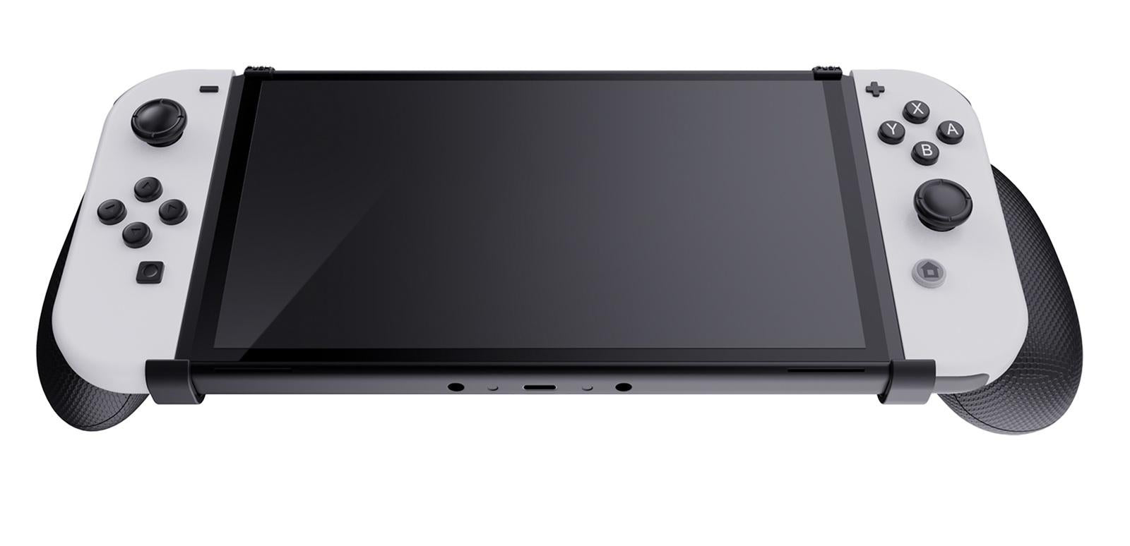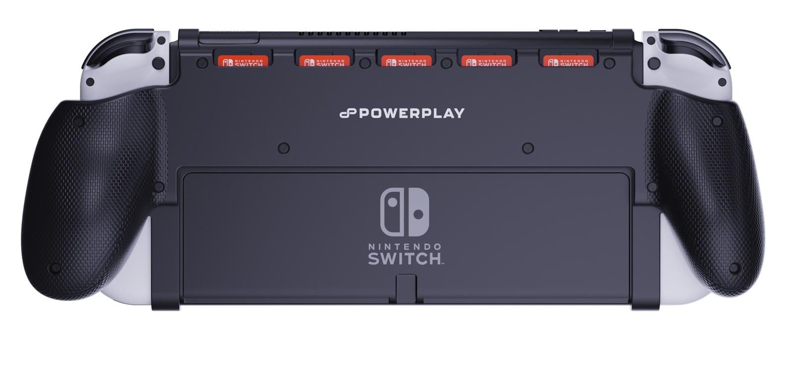 The PowerPlay Switch OLED Comfort Grip adds comfort and control to your handheld gaming sessions. Includes five built in Game Card slots to let you keep your favourite games on hand at all times. The Switch OLED Comfort Grip can also be used as a table-top stand either with or without the Joy Cons.Features:* Premium grips safely secure the console for use in handheld mode* Ergonomic textured handles add comfort and control* Game Card storage slots hold up to five Game Cards* Use with or without Joy Con controllersNB: Console, controllers and other accessories not included